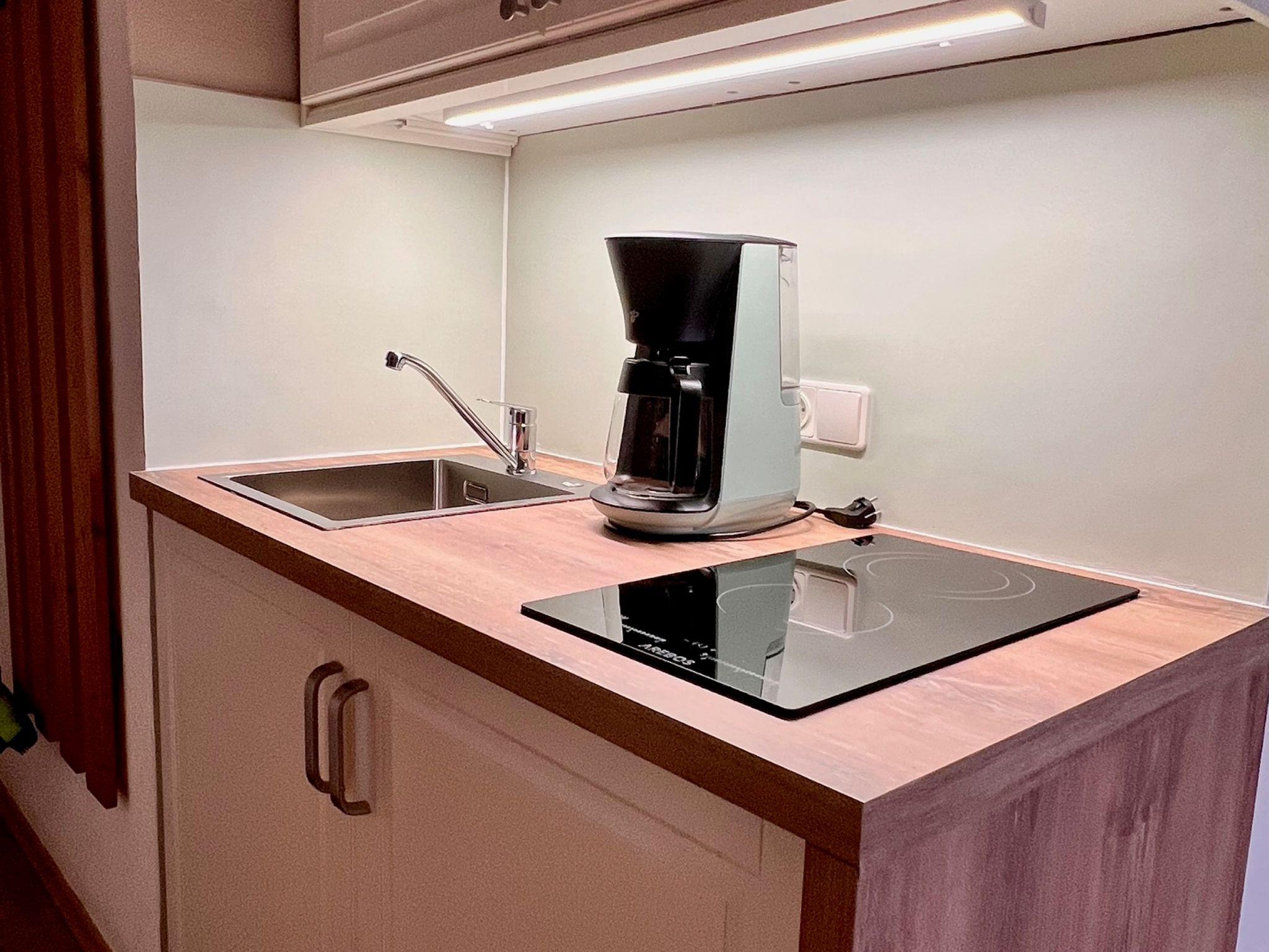 Die kleine Küchenzeile ist gut ausgestattet und ermöglicht eine unkomplizierte Selbstversorgung.