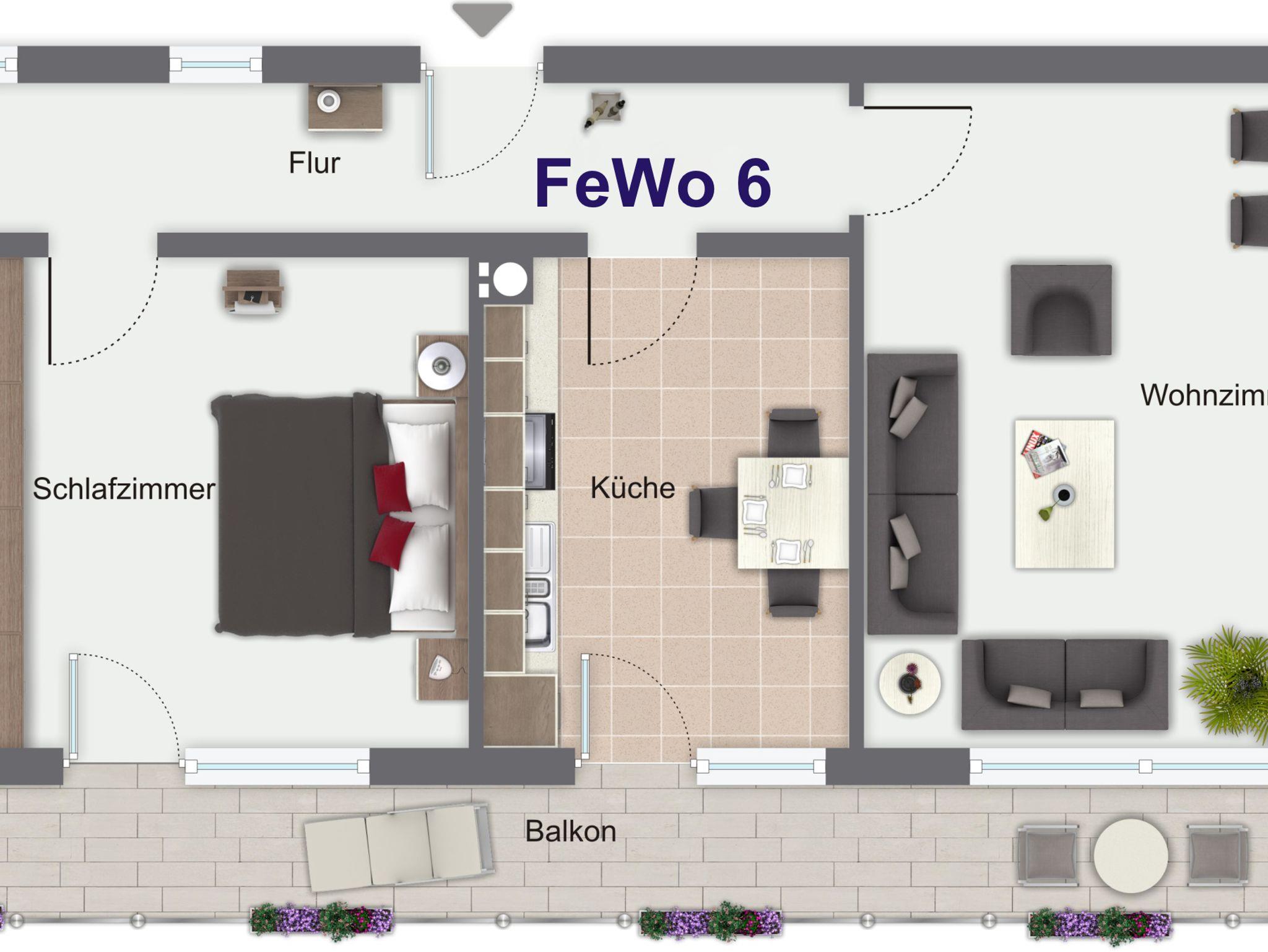 Gästehaus Friedlich, Ferienwohnung 6, Windschartenkopf, 1-4 Personen, 100 qm, 2 Schlafzimmer, 1 Badezimmer, Wohnzimmer, Küche und Balkon