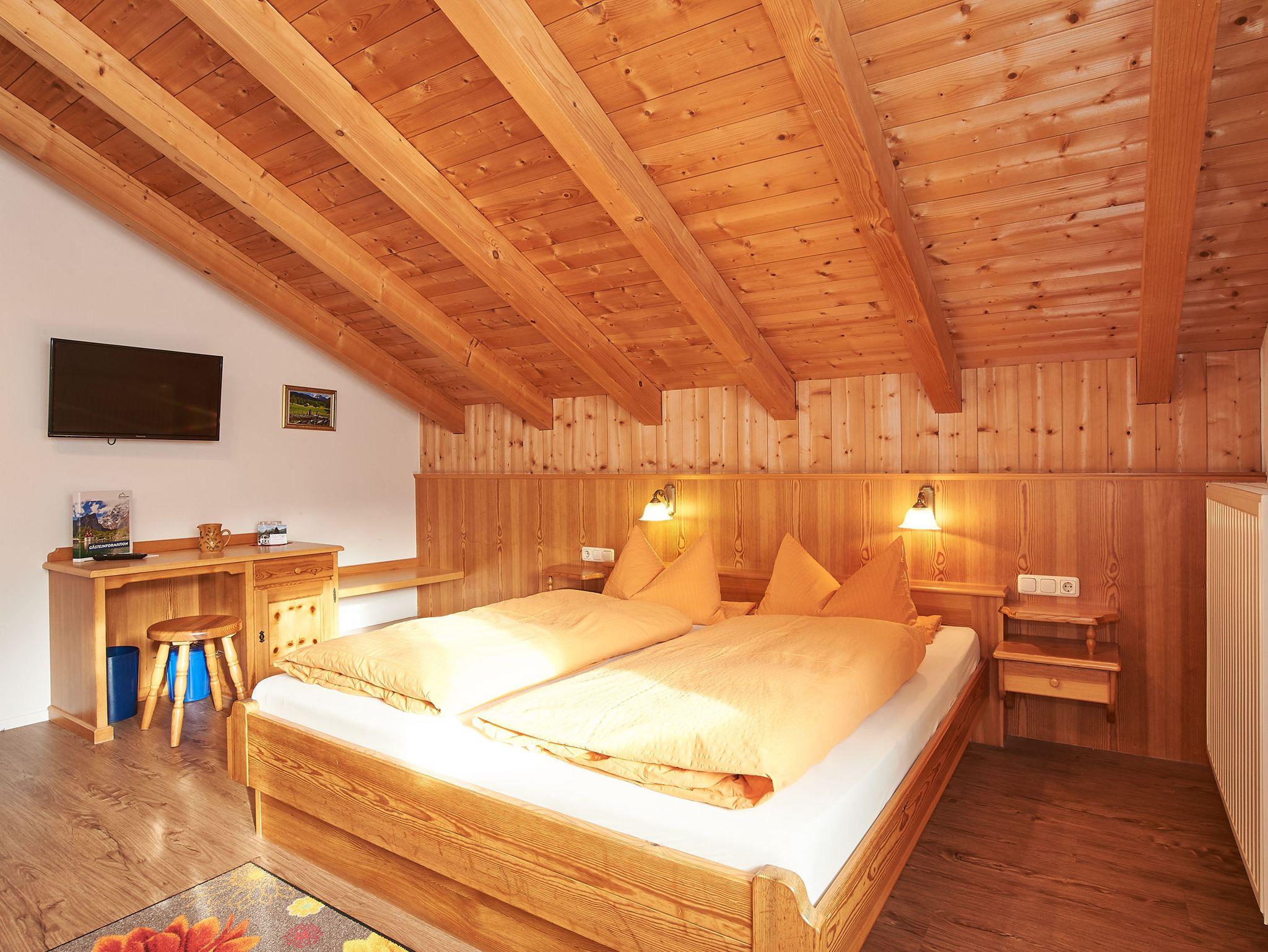 Das gemütliche Nichtraucher-Doppelzimmer ist ca. 30 qm groß und ausgestattet mit Dusche/WC, Fön, Toilettenartikel, einem Schreibtisch, Flachbildfernseher mit Kabel TV, Tisch und 2 gemütliche Fernsehsessel. Auf dem möblierten Balkon haben Sie einen wunderbaren Blick auf die Berge.