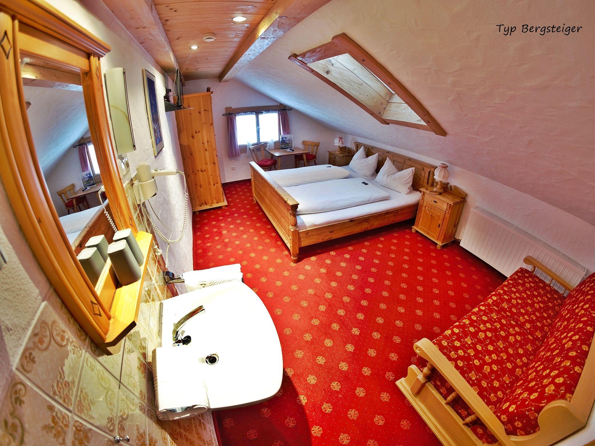 Unsere Zimmer befinden sich im 1. OG oder 2. OG. Ausgestattet mit Doppelbett (180x200), Dusche/WC (ausgenommen Bergsteiger), Handtücher und Föhn, TV, Sitzmöglichkeiten, sowie kostenloses W-Lan. Wunderschöner Bergblick aus allen Zimmern garantiert. Im 1. OG befindet sich zusätzlich ein großer Gästebalkon. Parkähnliche Grünanlage mit Erfrischungsbecken und großer Sonnenterrasse für Groß und Klein frei nutzbar. Für die Kleinsten gibt es einen Sandkasten, Trampolin, eine Schaukel sowie auch eine Tischtennisplatte. Kostenloser Parkplatz direkt am Haus. Genießen Sie unvergessliche Tage bei uns am Königssee.
