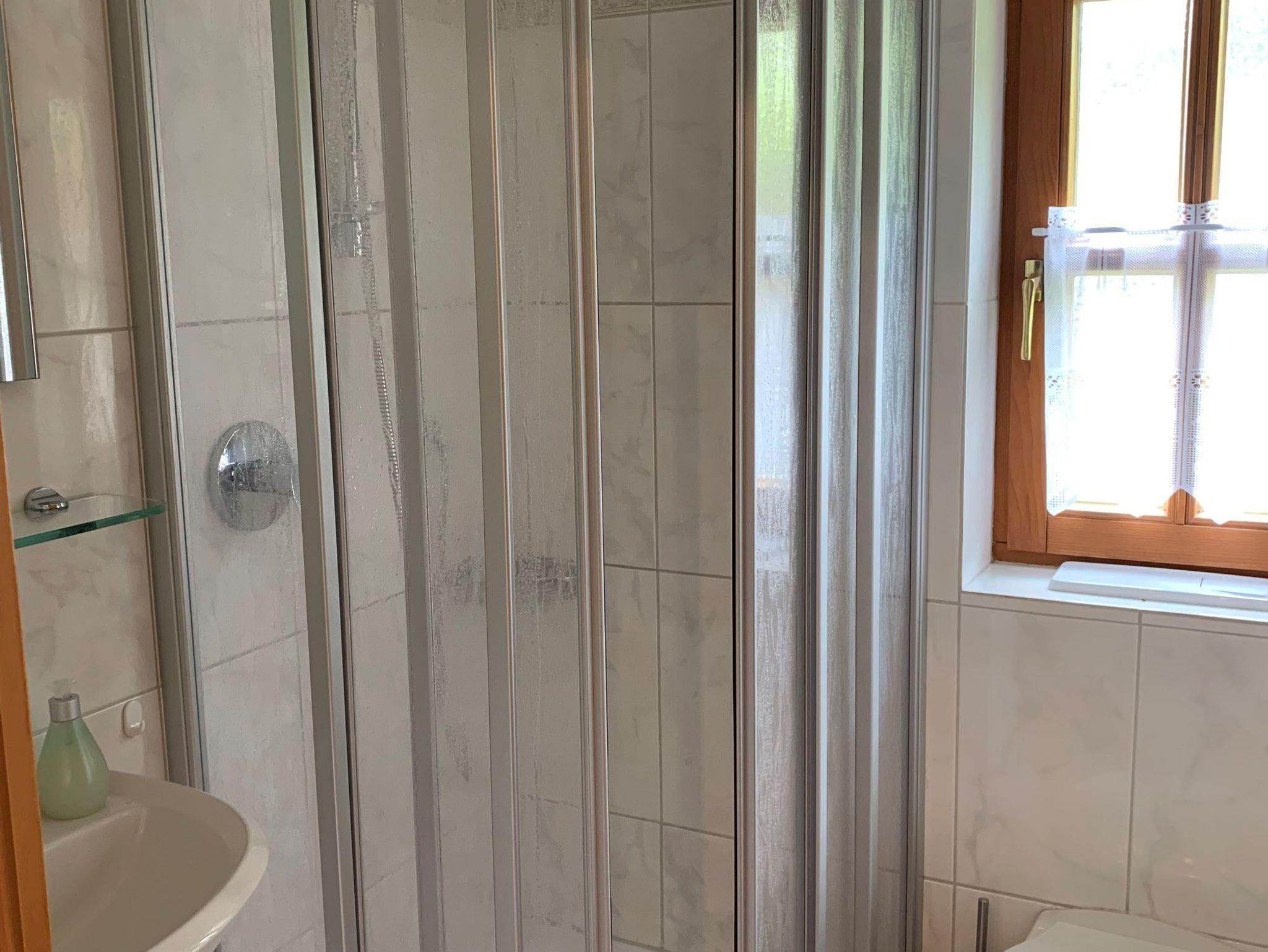 Ferienwohnung für 1-2 Erwachsene (35 qm), Balkon mit Bergblick, Schlafzimmer, Dusche/WC, Wohnzimmer mit Küchenzeile, Essplatz und Sofa, Internet-TV, WLAN, Radio, 4er Ceranfeld, Dunstabzug, Backofen, Kühlschrank, Kaffeemaschine, Toaster, Wasserkocher, Eierkocher. Eigener Eingang, Kfz-Stellplatz.