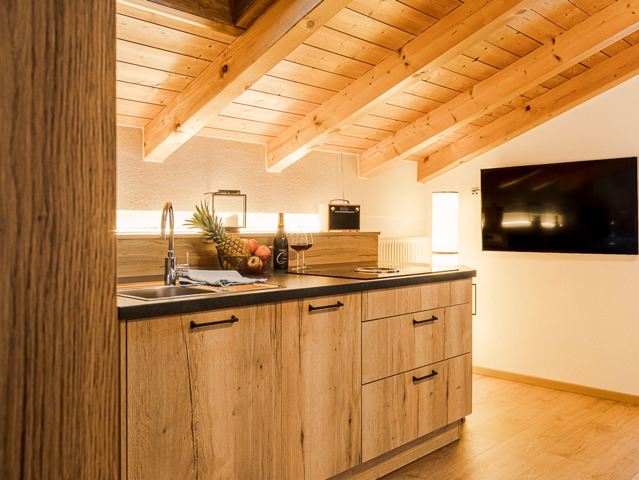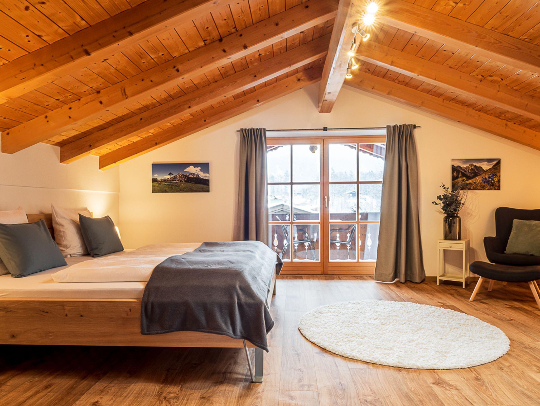 Unsere liebevoll modern und rustikal eingerichtete Ferienwohnung befindet sich im Dachgeschoss unseres Hauses und besteht aus einem Wohn- und Essbereich, einem Bad mit Dusche und WC und einem großen separaten Schlafzimmer. Der Wohnraum ist mit einer Essecke, einer gemütlichen Couch mit TV und einer großzügigen Küche ausgestatte. Die gemütliche Wohnung ist ca. 65 qm groß und wurde im Jahr 2018 neu renoviert. Sie verfügt zudem über einen ost- und einen westseitigen Balkon mit Sitzgelegenheiten und herrlicher Aussicht auf die Berchtesgadener Bergwelt. Bettwäsche und Handtücher werden kostenlos zur Verfügung gestellt. Die Endreinigung, sowie Strom, Heizung und Wasser sinhd im Preis enthalten.