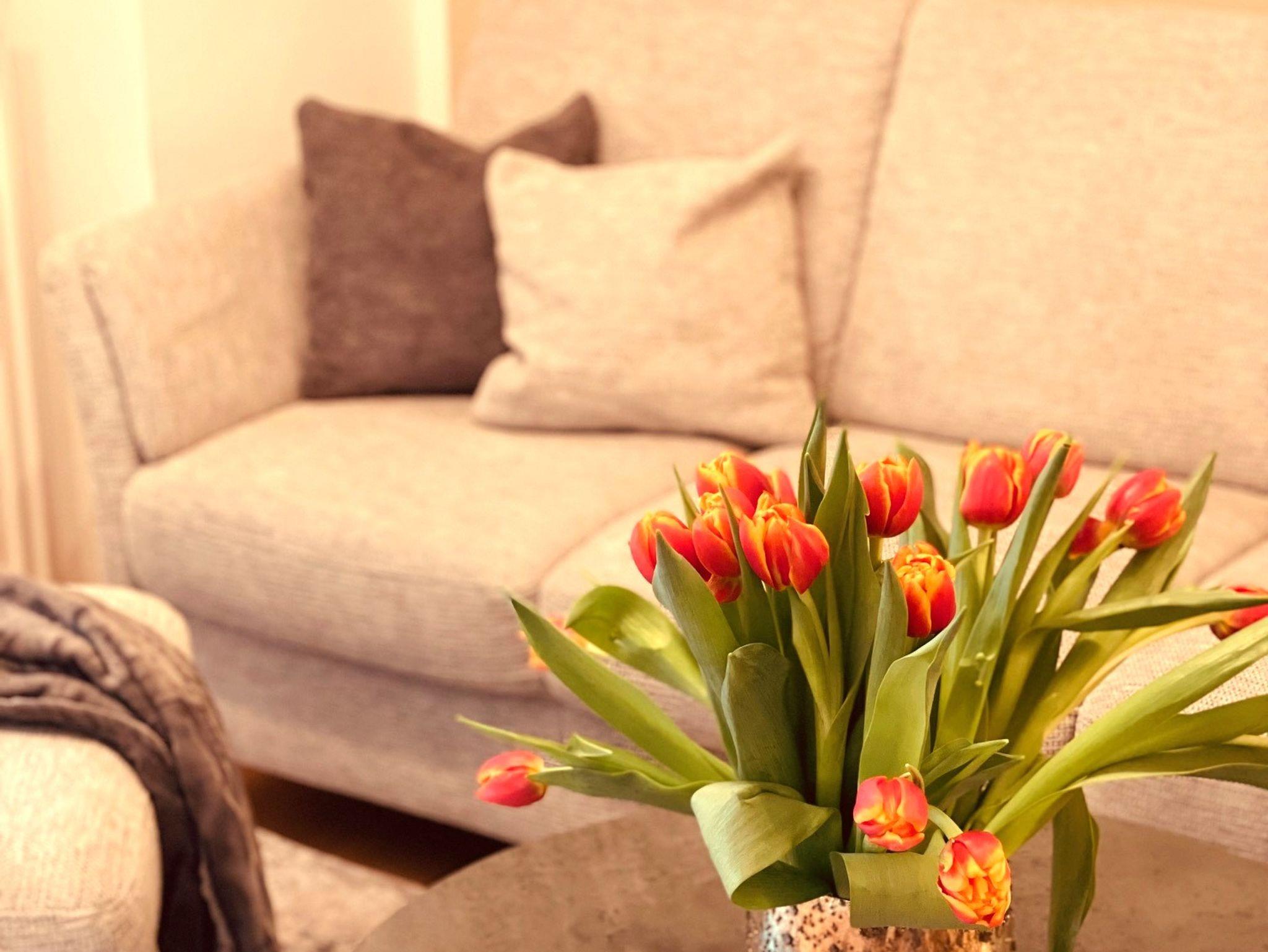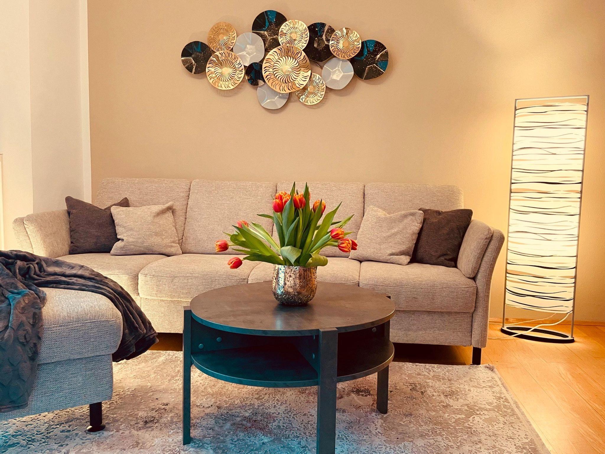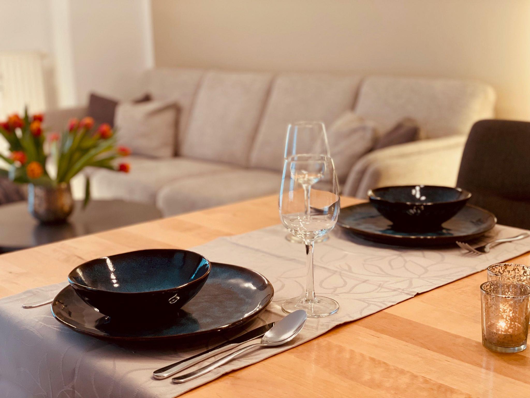 Unsere große Nichtraucherferienwohnung hat 94 m² und verfügt über ein sonniges Wohnzimmer mit gemütlicher Eckcouch, großem Flachbildfernseher mit Kabel-Anschluss, DVD-Player, Stereo-Anlage und kostenlosem W-LAN Zugang. Die Küche bietet eine top Ausstattung u.a. mit Geschirrspüler, Herd, Backofen, Kühlschrank und Gefrierfach.