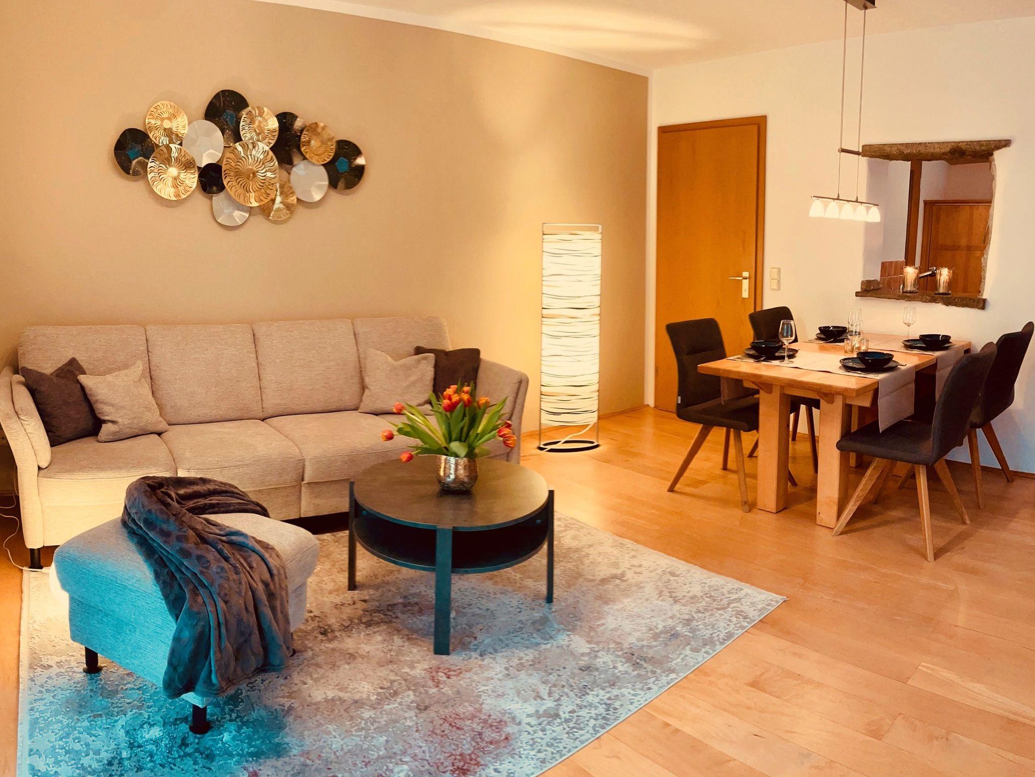Willkommen in unserer gemütlichen, modern eingerichteten Ferienwohnung für 2-6 Personen in ruhiger, sonniger Lage mit Bergpanorama! Unsere große Nichtraucherferienwohnung hat 94 m² und verfügt über ein sonniges Wohnzimmer mit gemütlicher Eckcouch, großem Flachbildfernseher mit Kabel-Anschluss, DVD-Player, Video-Rekorder, Stereo-Anlage und kostenlosem W-LAN Zugang. Die Küche bietet eine top Ausstattung u.a. mit Geschirrspüler, Herd, Backofen, Kühlschrank und Gefrierfach.