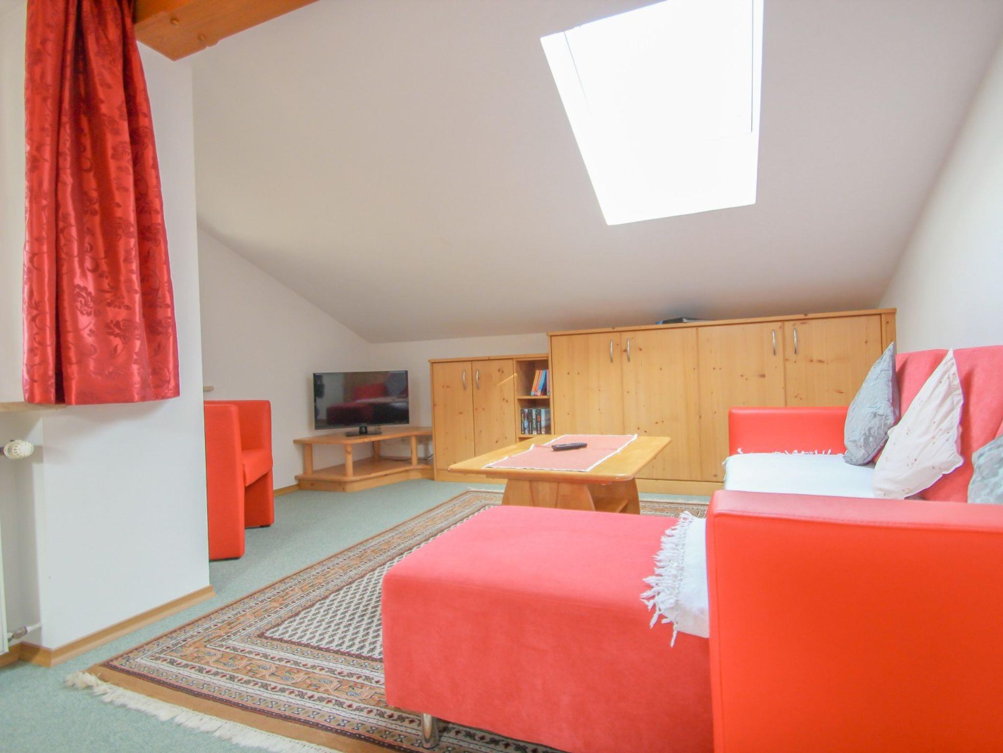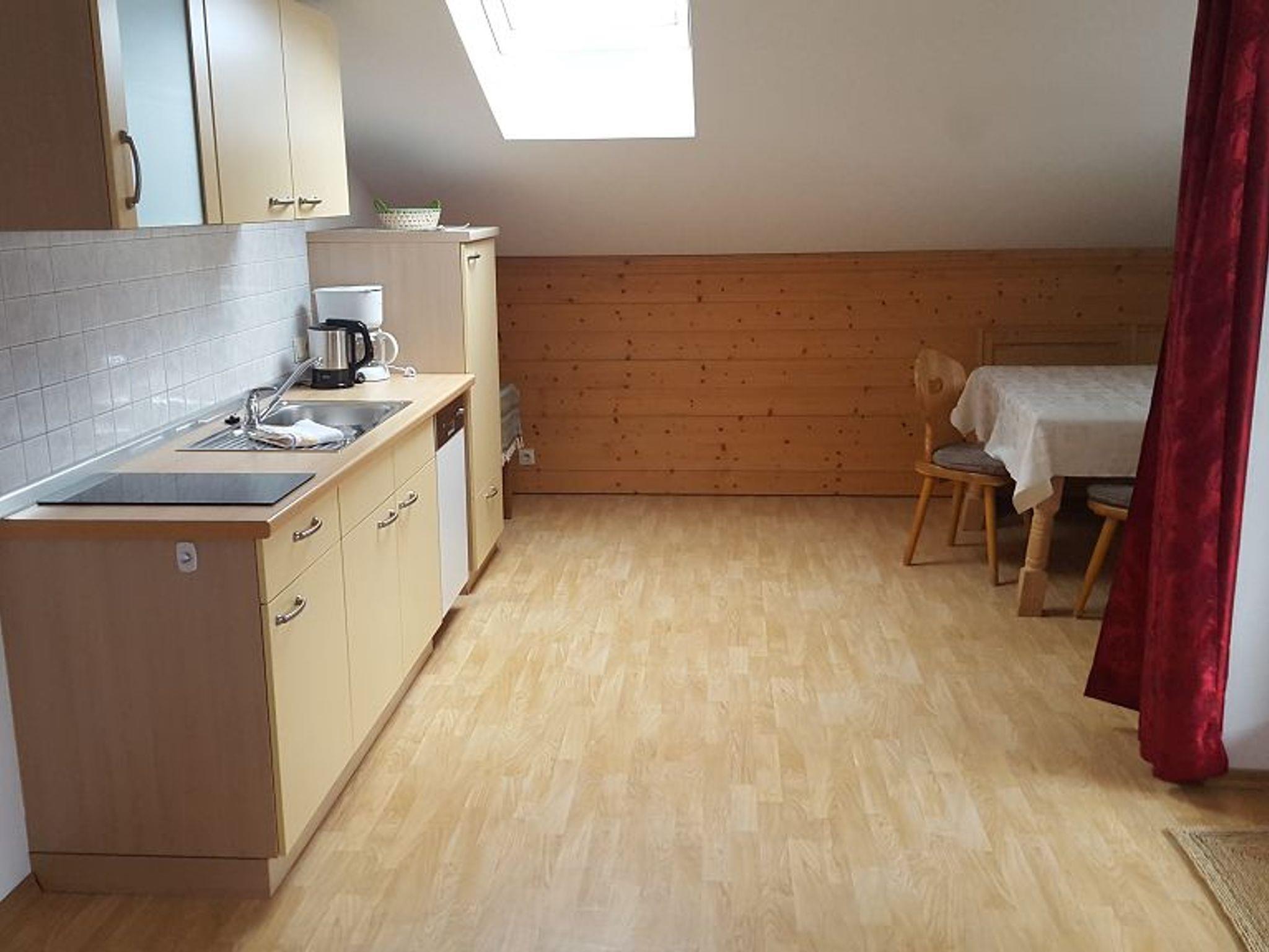 Die Nichtraucher-Ferienwohnung liegt im Dachgeschoß und bietet Platz auf 56 qm. Sie ist ausgestattet mit einem separaten Schlafzimmer mit Doppelbett, einem gemütlichen Wohnzimmer mit Sitzgruppe, TV, Essecke und Kochnische (Kühlschrank, Geschirrspüler, Mikrowelle) sowie einem Bad mit Dusche/WC mit Fön und Handtüchern. Auf dem möbelierten Balkon genießen Sie den Aussicht.