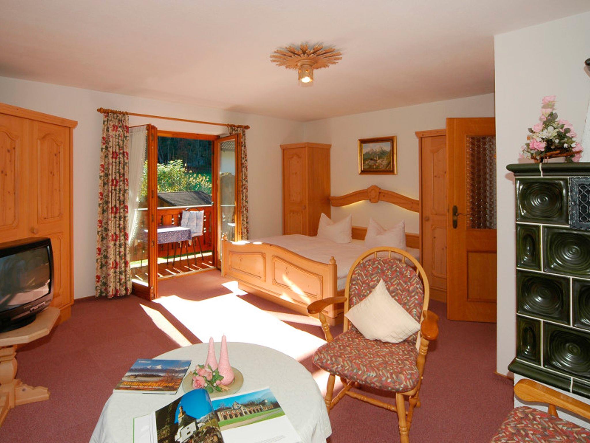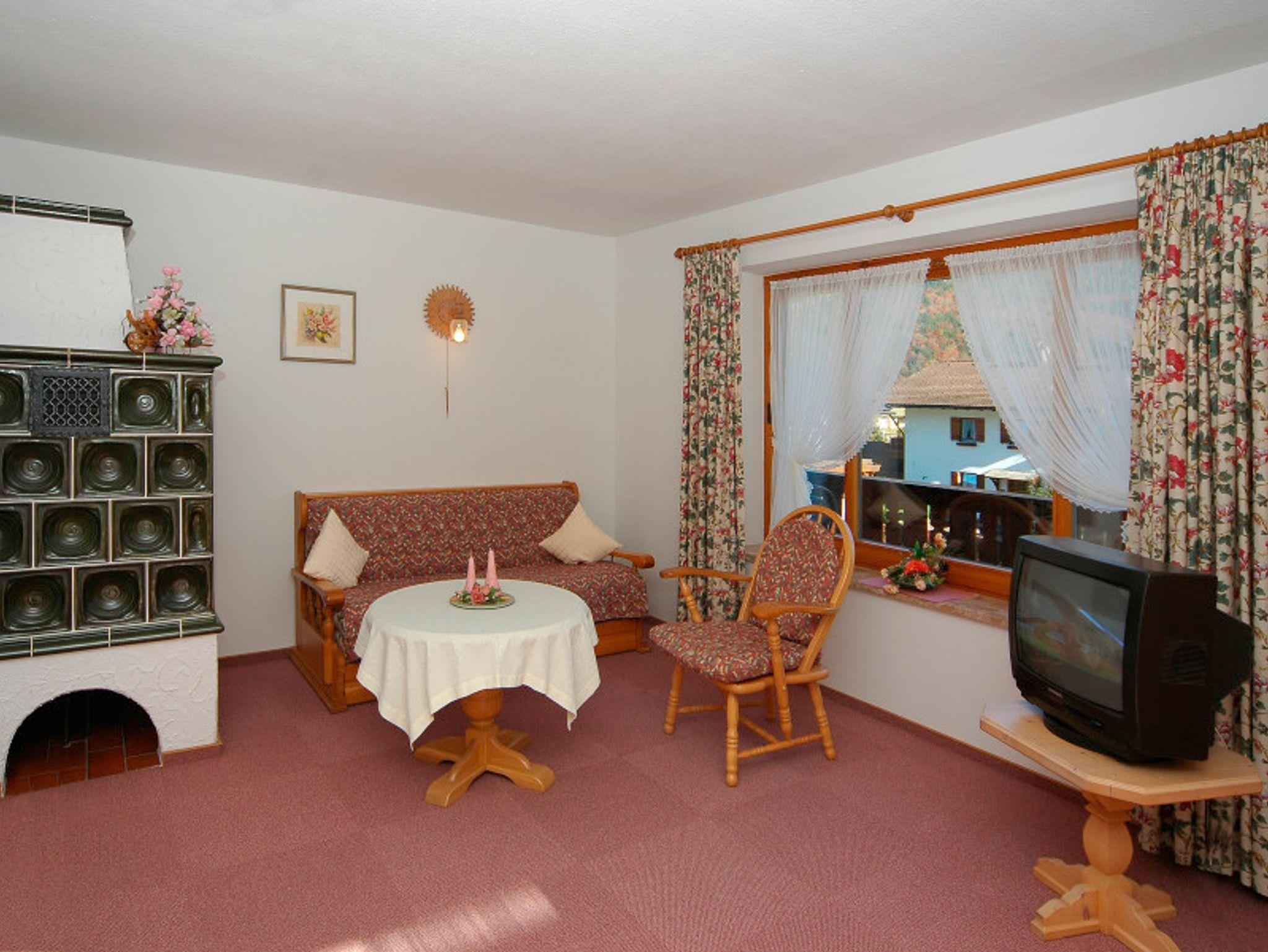 Die Ferienwohnung hat einen großen Balkon, Süd und Ost und ist mit einer Wohnküche mit Essecke, Küchenzeile und Couchbett, Wohn- Schlafraum mit Doppelbett, Sitzecke, DU/WC, Kabel-TV und Kachelofen ausgestattet. Die Küche verfügt über einen Wasserkocher, Kaffeemaschine, Eierkocher, 4-Platten Kochmulde und Backofen. Bettwäsche und Handtücher sind vorhanden. Haustiere sind in der Wohneinheit nicht gestattet.