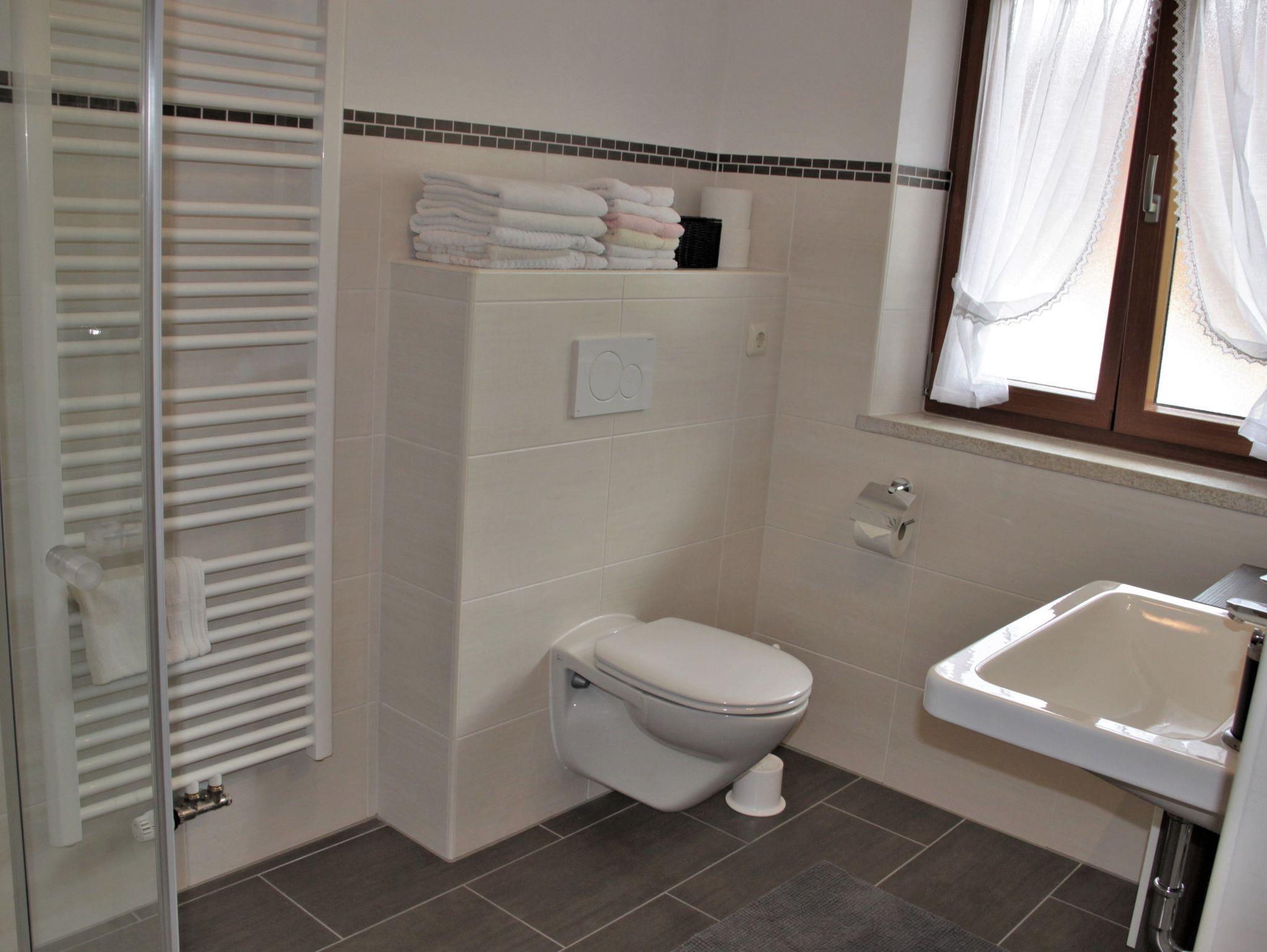 Komplett neu gestaltete Ferienwohnung für bis zu 2 Personen (44 qm), Schlafzimmer mit Doppelbett, Bad mit Dusche und WC, gemütliche und voll ausgestattete Wohnküche (Herd mit Backofen, Geschirrspüler, Essgruppe, Couch, Sat-TV). 2 separate Balkone (nach Osten und Süden) mit herrlichem Blick auf die Berge.