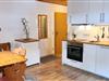 Die helle Wohnung im ersten Obergeschoss verfügt über eine gut ausgestattete Wohnküche mit Backofen, Ceranfeld und Spülmaschine, eine gemütliche Essecke mit uriger Eckbank und ein separates Schlafzimmer. Vom sonnigen Balkon mit Sitzecke, Sonnenschirm und Liegestuhl genießen Sie das herrliche Bergpanorama.