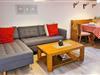 Die Ferienwohnung verteilt sich auf drei gemütliche Zimmer, darunter zwei Schlafzimmer und ein einladendes Wohnzimmer mit einer kleinen Küchenzeile. Ein Schlafzimmer verfügt über ein Doppelbett und das weitere Schlafzimmer über ein Etagenbett für Kinder. Im Wohn- und Essbereich finden Sie ein Sofa und einen Esstisch. Kühlschrank mit integriertem Gefrierfach, ein 2-Platten-Herd, Kaffeemaschine, Toaster, Wasserkocher sowie Küchenutensilien, Geschirr und Besteck stehen Ihnen zur Verfügung. Das Badezimmer der Ferienwohnung bietet eine Badewanne, Kosmetikspiegel, Haartrockner und WC. Eine Waschmaschine und ein Trockner zur gemeinschaftlichen Nutzung befinden sich im Keller des Hauses und können gegen eine Gebühr genutzt werden. WLAN und ein privater Parkplatz runden das Angebot ab. Der Balkon mit Bergblick lädt zum Verweilen und Entspannen ein.