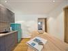 Der offen gestaltete Wohn- und Essbereich bildet das Herzstück der Wohnung. Warme Holzelemente, eine hochwertige Einrichtung und große Fenster schaffen eine angenehme, ruhige Wohnatmosphäre. Vom Essplatz und der Sitzecke aus öffnet sich der Blick auf die umliegende Bergwelt mit dem markanten Hoher Göll – ein Panorama, das den Alltag schnell vergessen lässt. Das ausziehbare Schlafsofa bietet bei Bedarf zusätzlichen Platz.