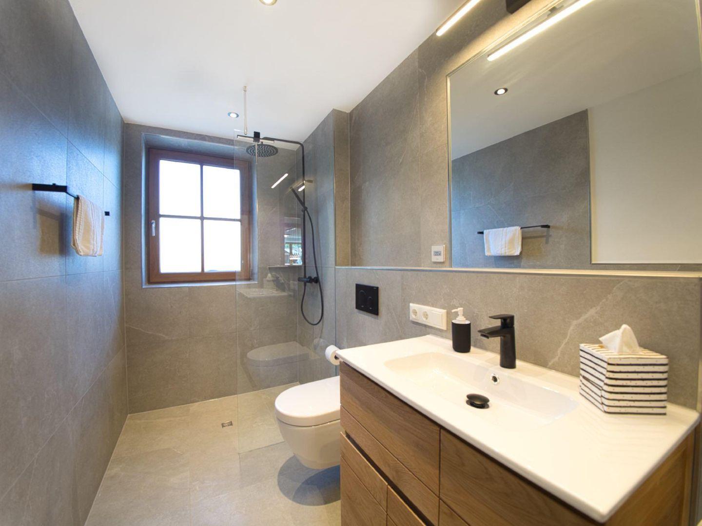 Drei separate Schlafzimmer mit komfortablen Boxspringbetten und Verdunklungsrollos sorgen für erholsame Nächte. Zwei moderne Badezimmer mit bodengleichen Duschen bieten auch bei voller Belegung ausreichend Platz und machen die Wohnung besonders alltagstauglich – auch für längere Aufenthalte.