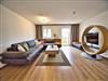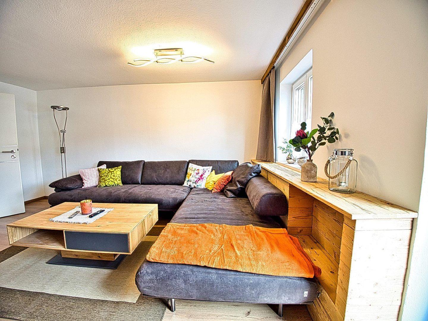 Die Wohnung verfügt über einen eigenen Eingang und verbindet alpinen Charme mit funktionalem Wohnkomfort. Warme Holzelemente schaffen eine gemütliche Atmosphäre, ohne auf Alltagstauglichkeit zu verzichten. Herzstück ist der großzügige Wohnbereich mit Sofa, Smart-TV, offen gestalteter Küche und angrenzendem Essplatz – perfekt für gemeinsames Kochen, Essen und Zusammensein.