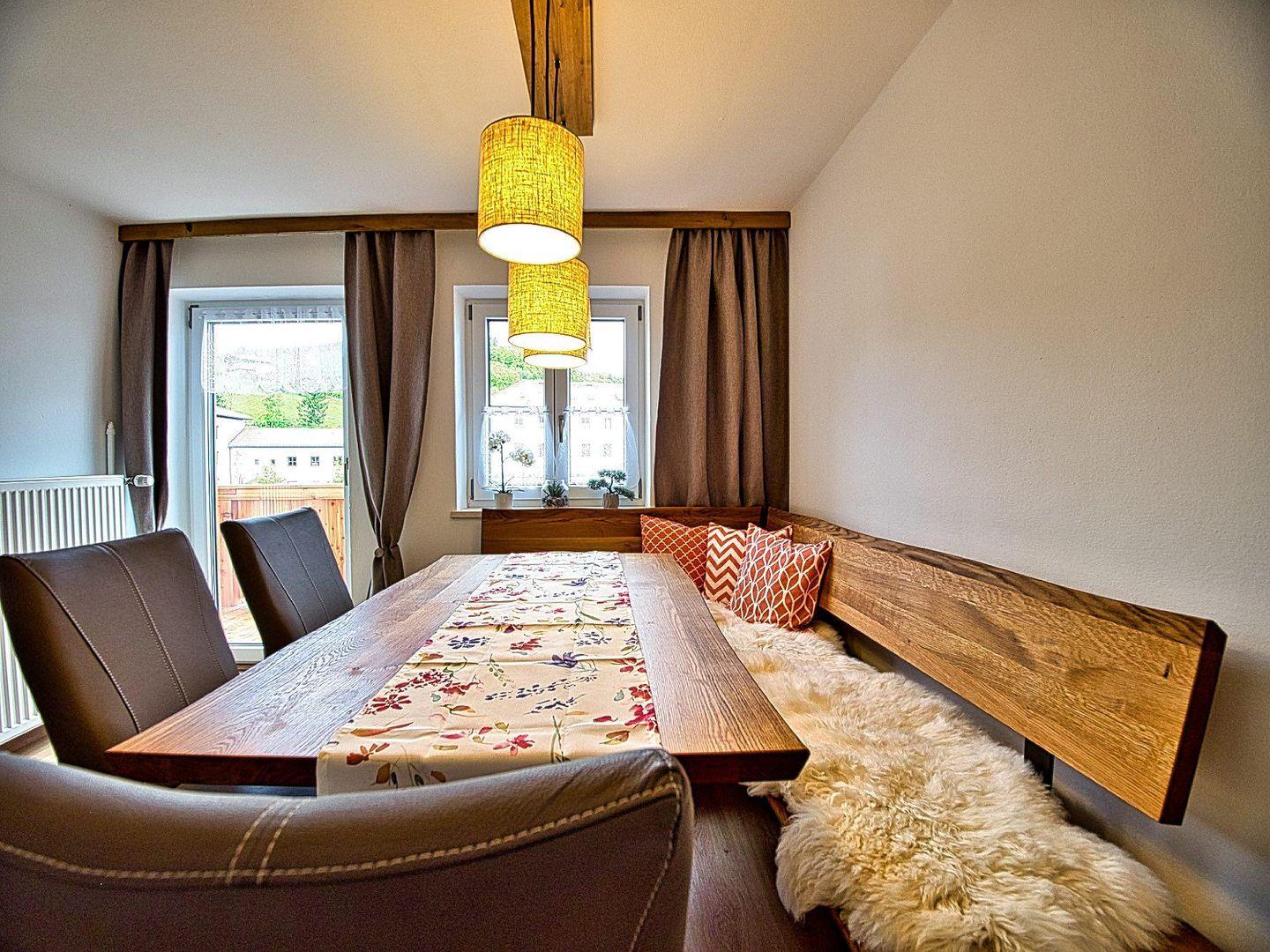 Die Ferienwohnung Am Bruckenstüberl ist eine großzügige Ferienwohnung für Familien, Gruppen und aktive Urlauber, die Wert auf Platz, zentrale Lage und Flexibilität legen. Mit 124 m² Wohnfläche auf zwei Etagen bietet sie Raum für bis zu acht Gäste – ideal für gemeinsame Reisen, Mehrgenerationen-Urlaube oder Aufenthalte mit Haustier.