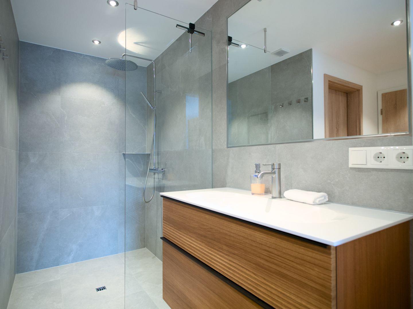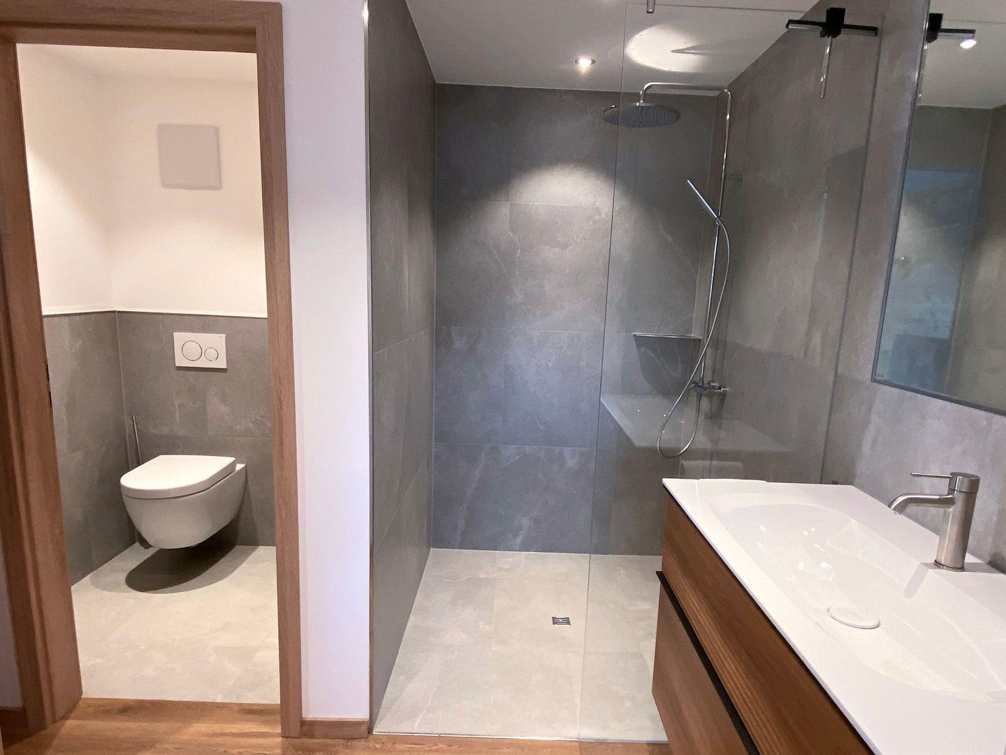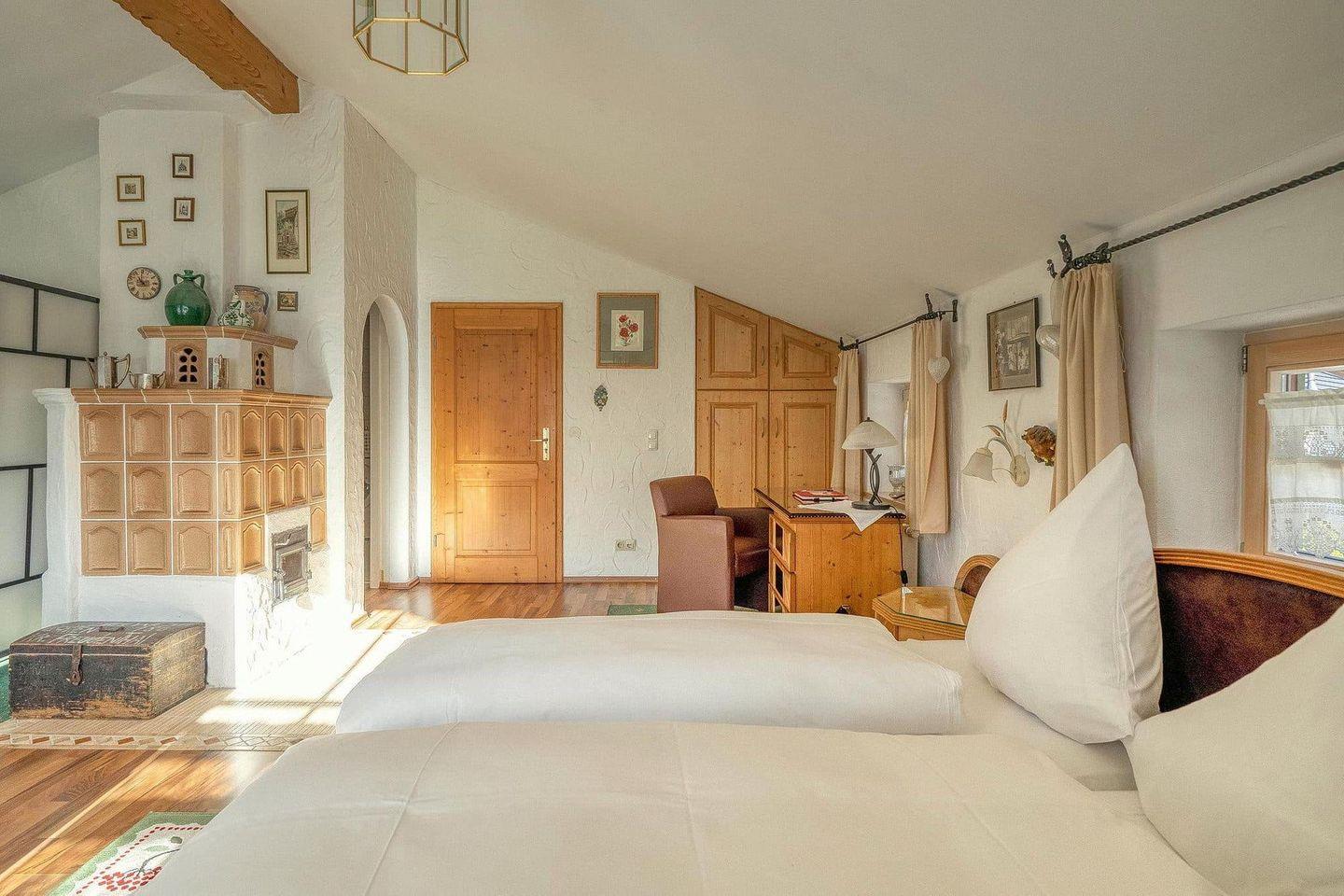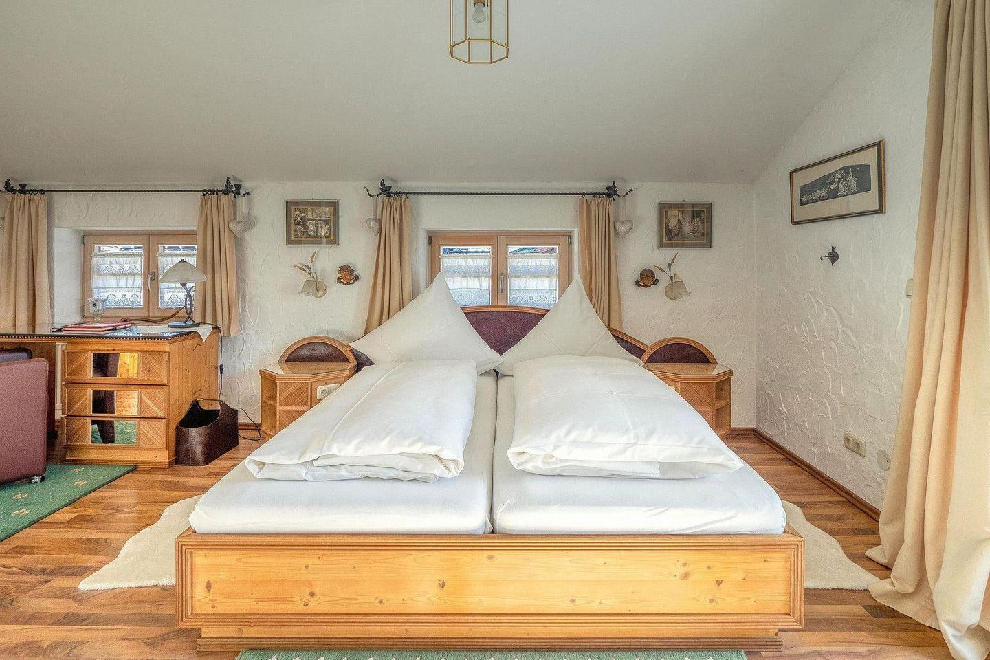 Im Obergeschoss erwartet Sie ein großzügiges Schlafzimmer mit Doppelbett, zusätzlichem Einzelbett und Schlafsofa sowie Badezimmer, und WC. Ein traditioneller Kaminofen sorgt hier für wohlige Wärme und eine behagliche Atmosphäre. Vom Balkon genießen Sie einen beeindruckenden Panoramablick auf die umliegende Bergwelt mit Kehlsteinhaus, Hohes Brett, Jenner und Hohem Göll – ein Anblick, der zu jeder Jahreszeit begeistert.