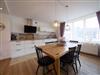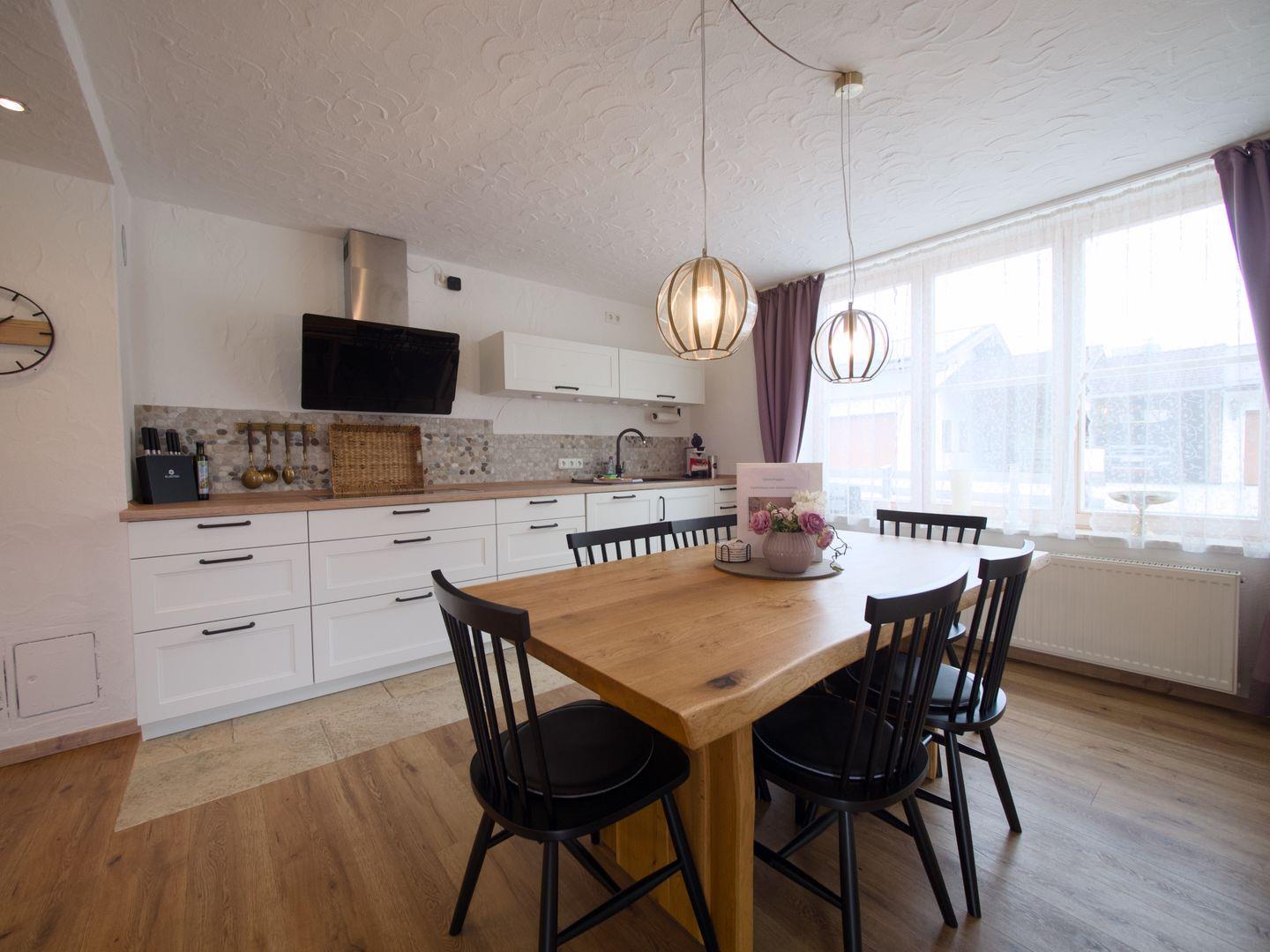 Auf rund 120 m² Wohnfläche erstreckt sich das Haus über zwei Etagen und bietet Platz für bis zu sechs Gäste. Der offene Wohn- und Essbereich im Erdgeschoss ist der zentrale Treffpunkt: gemütliches Sofa, großer Esstisch und eine voll ausgestattete Küche schaffen ideale Bedingungen für entspannte Abende mit Familie oder Freunden. Ein Schlafzimmer mit eigenem Bad im Erdgeschoss macht das Haus besonders komfortabel – auch für mehrere Generationen.