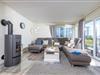 Der großzügige Wohn- /Essbereich mit bodentiefen Fenstern, Sitzlandschaft und dem großen Esstisch für 6 Personen ist der Mittelpunkt der Wohnung. Hier finden gemütliche Momente vor dem Kaminofen statt und gemeinsame Mahlzeiten, die in der technisch voll ausgestatteten Küche gezaubert werden können.
