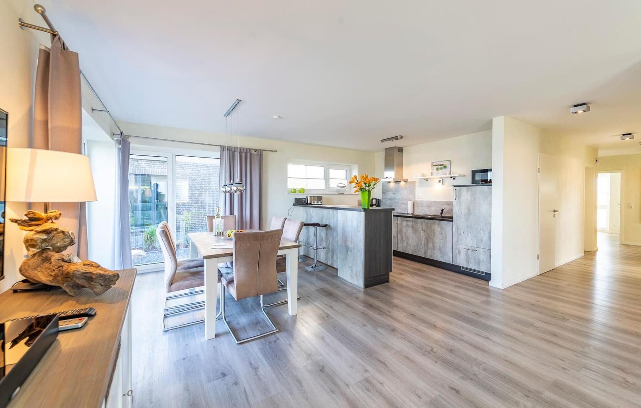 Die ebenerdige Ferienwohnung ist sehr hochwertig und stilvoll in Naturtönen und bewusst klaren und schlichten Formen gehalten. Sie bietet an anspruchsvoller Ausstattung alles für einen rundum gelungenen Urlaub am Meer.