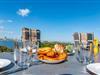 In dem modernen Hauptbadezimmer befindet sich eine finnische Sauna, die das persönliche Wohlfühlprogramm mit einem weiten Ausblick auf den Hafen krönt.
