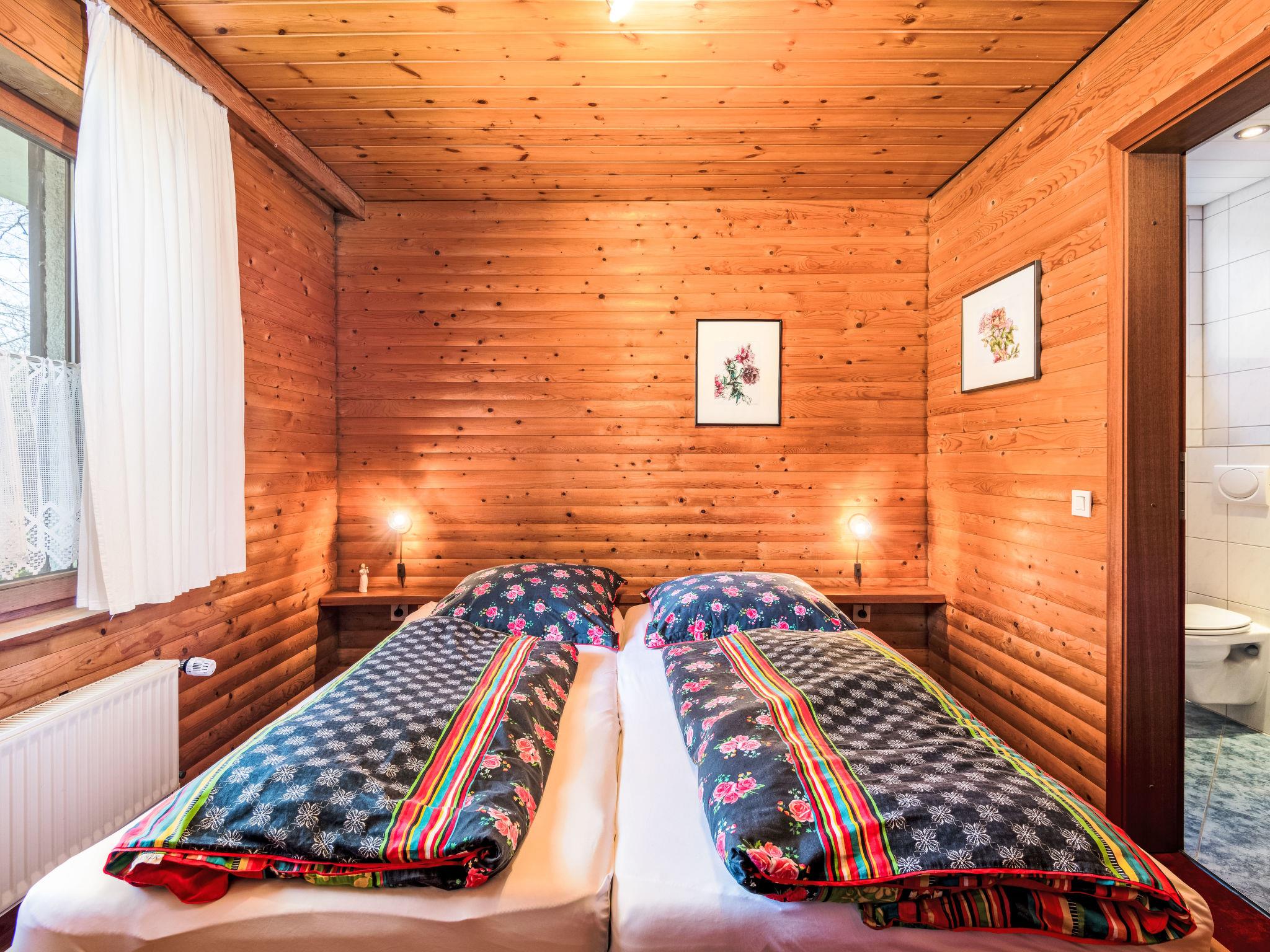 2-Zimmer-Wohnung 35 m2, im ebenerdigen Untergeschoss. Gemütlich und mit viel Holz eingerichtet: Wohn-/Esszimmer 20 m2 mit Sat-TV (Flachbildschirm). Ausgang zur Terrasse. 1 Zimmer 9 m2 mit 1 Doppelbett (180 cm, Länge 200 cm). Kochnische (4 Kochplatten, Backofen, Toaster, Wasserkocher, elektrische Kaffeemaschine). Dusche/WC. G-Heizung. Kleine Terrasse 6 m2, Garten 150 m2, Rasen 50 m2. Terrassenmöbel. Zur Verfügung: Internet (WLAN, gratis). Bitte beachten: Nichtraucher-Unterkunft. Maximal 1 Haustier/Hund erlaubt. Rauchmelder. Zweites Haustier auf Anfrage möglich (Bezahlung pro Hund/Tag vor Ort).