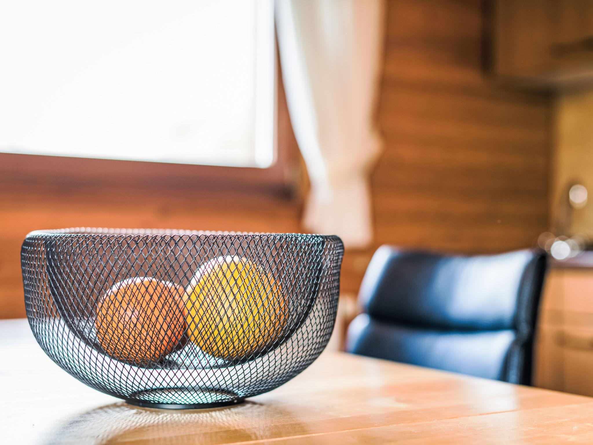 3-Zimmer-Wohnung im Obergeschoss. Gemütlich und mit viel Holz eingerichtet: Wohn-/Esszimmer 40 m2 mit offenem Kamin und Sat-TV. Ausgang zum Balkon. 1 Zimmer 11 m2 mit 1 Doppelbett (180 cm, Länge 200 cm). 1 Zimmer 5 m2 mit 1 x 2 Etagenbetten (90 cm, Länge 200 cm). Kochnische (4 Kochplatten, Backofen, Toaster, Wasserkocher, elektrische Kaffeemaschine). Dusche/WC. G-Heizung. Balkon 7 m2. Balkonmöbel. Zur Verfügung: Holz (extra). Internet (WLAN, gratis). Bitte beachten: Nichtraucher-Unterkunft. Maximal 1 Haustier/Hund erlaubt. Rauchmelder, Feuerlöscher. Zweites Haustier auf Anfrage möglich (Bezahlung pro Hund/Tag vor Ort). Zugang zum Obergeschoss über Aussentreppe (Holz).