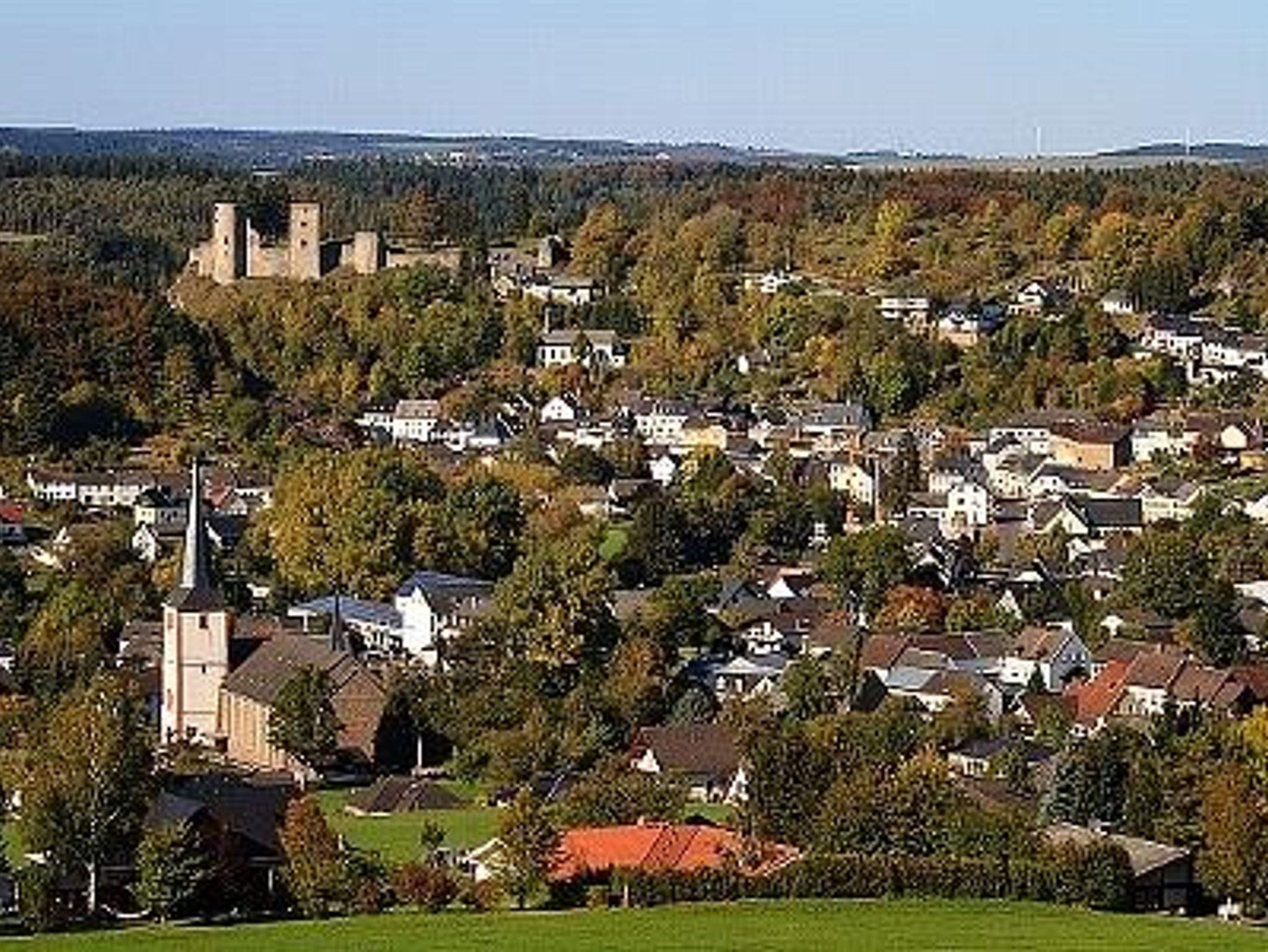 Kleines, schön gelegenes Feriendorf mit insgesamt acht Holz-Blockhäusern unmittelbar am Waldrand an einem sonnigen Hang ca. 1200 m vom Ortszentrum Schönecken, sehr ruhig; ideal für Familien mit Kindern.