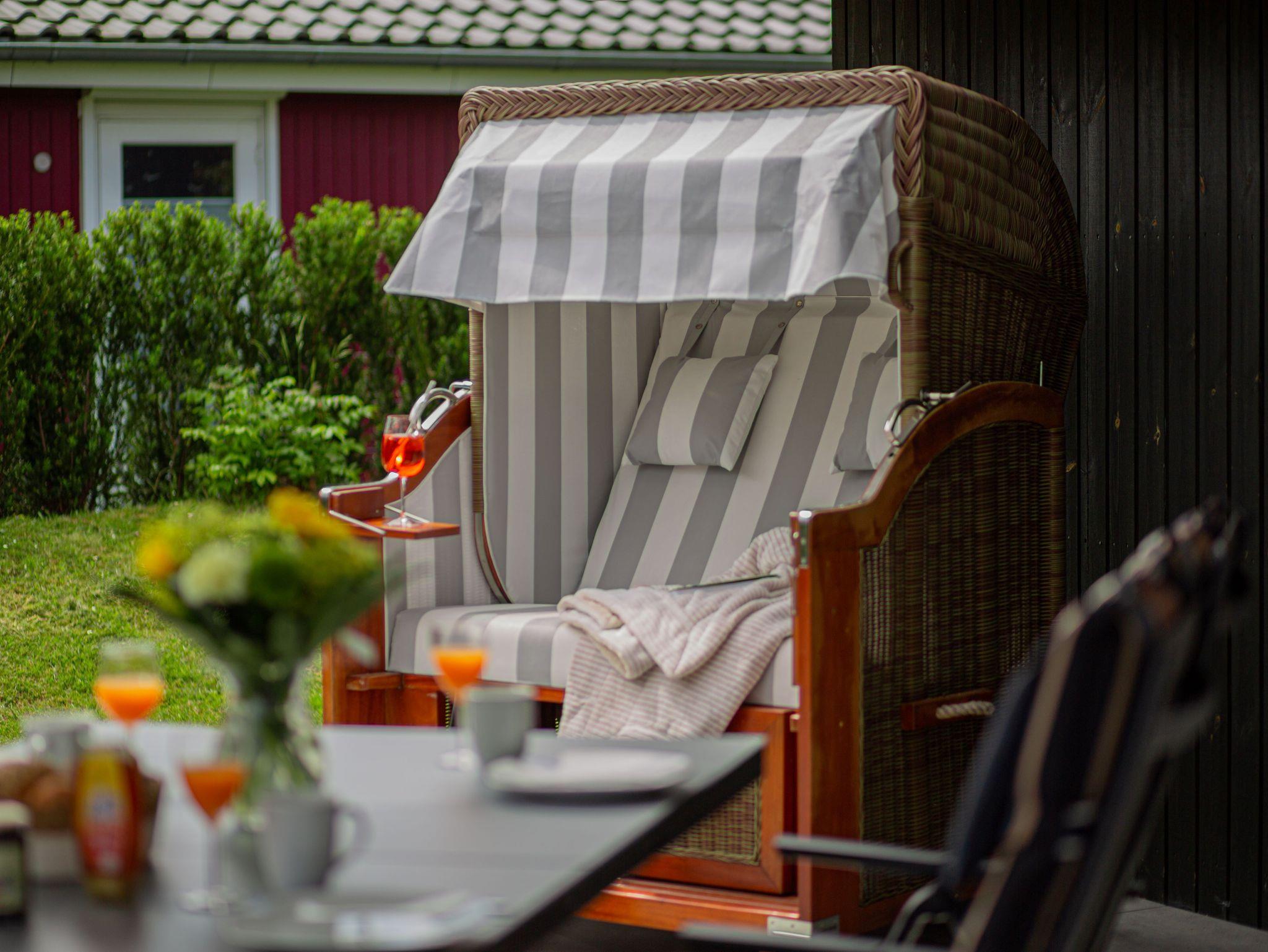 Im Ferienhaus Strandmuschel erwartet Sie ein geräumiges Wohnzimmer mit einer einladenden Sitzgruppe, einem Esstisch und einem behaglichen Kamin. Darüber hinaus stehen zwei Schlafzimmer mit jeweils einem Doppelbett (180 x 200 und 160 x 200) zur Verfügung. Ein weiteres Zimmer bietet einen Rückzugsort und kann dank eines hochwertigen Schlafsofas (140 x 200) auch als zusätzliches Schlafzimmer genutzt werden. Eine offene Küche sowie ein Badezimmer mit Dusche/WC und einer angrenzenden Sauna vervollständigen das Angebot. Zwei teilweise überdachte Terrassen und der großzügige eingezäunte Garten bieten viel Platz im Freien für Mensch und Tier. Ein PKW-Stellplatz auf dem Grundstück sowie ein abschließbarer Fahrradschuppen sind ebenfalls vorhanden. Schnelles Internet via Glasfaser.