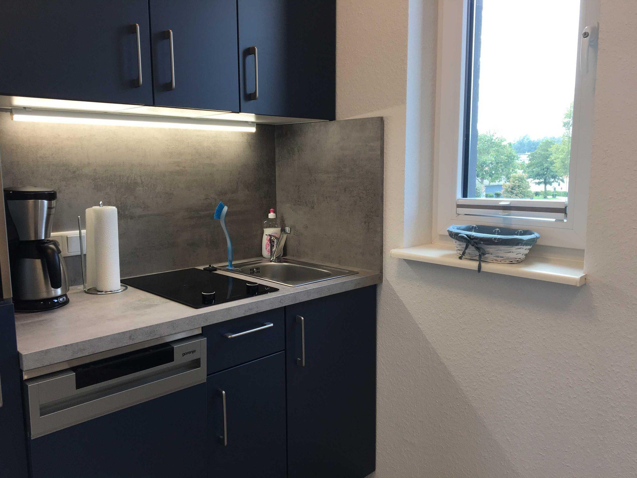 In der kleinen voll ausgestatteten Küchenzeile mit 2 Glaskeramik-Kochfeldern, Spüle, Kühlschrank, Backofen, Geschirrspüler, Kaffeemaschine, Toaster und Wasserkocher können Sie sich Ihr Essen selbst zubereiten und anschließend mit dem Blick auf die Ostsee genießen.