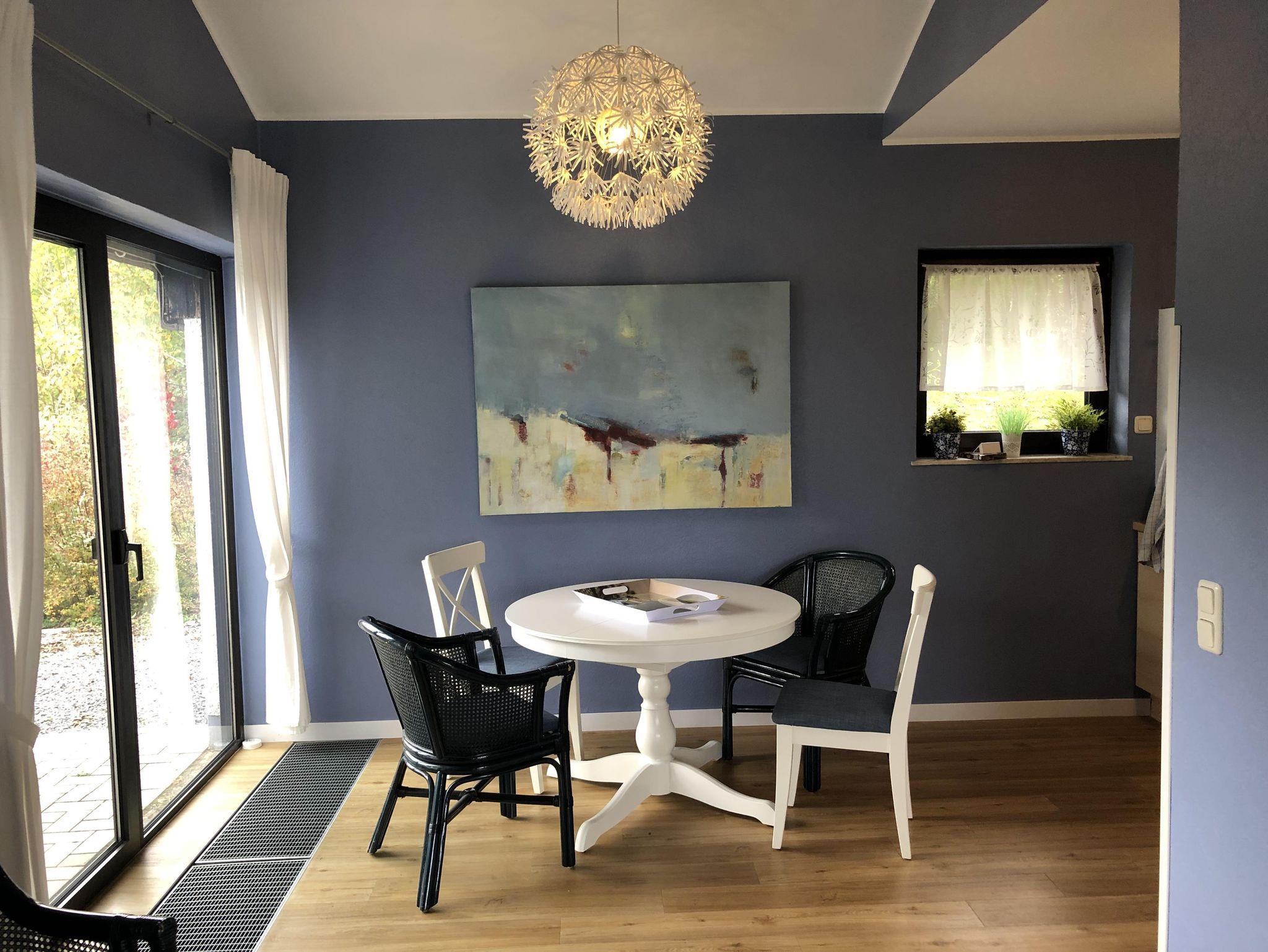 Unser Haus verfügt über 60m² und ist individuell und liebevoll eingerichtet. Die persönliche Note erhält es durch zahlreiche Kunstwerke der Dauner Künstlerin Jutta Schulte-Gräfen. Wohn-und Essbereich sind lichtdurchflutet und gemütlich,Sat TV und WLAN selbstverständlich. Mit Rücksicht auf unsere Gäste ist unser Haus auf Nichtraucher ausgerichtet und Haustiere sind nicht erlaubt.Die Küche ist komplett eingerichtet, das Duschbad mit Handtüchern und Fön ausgestattet.Die beiden Schlafzimmer bieten hohen Schlafkomfort in Boxspringbetten der Fränkischen Bettenmanufaktur.Ein Flyer E-Bike mit niedrigem Einstieg wird gegen 20€ Tagesgebühr zur Verfügung gestellt.