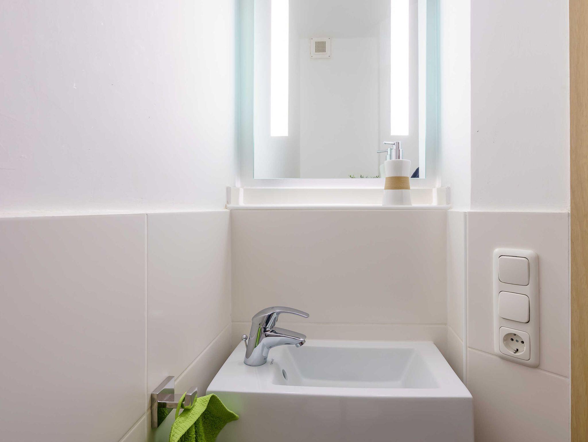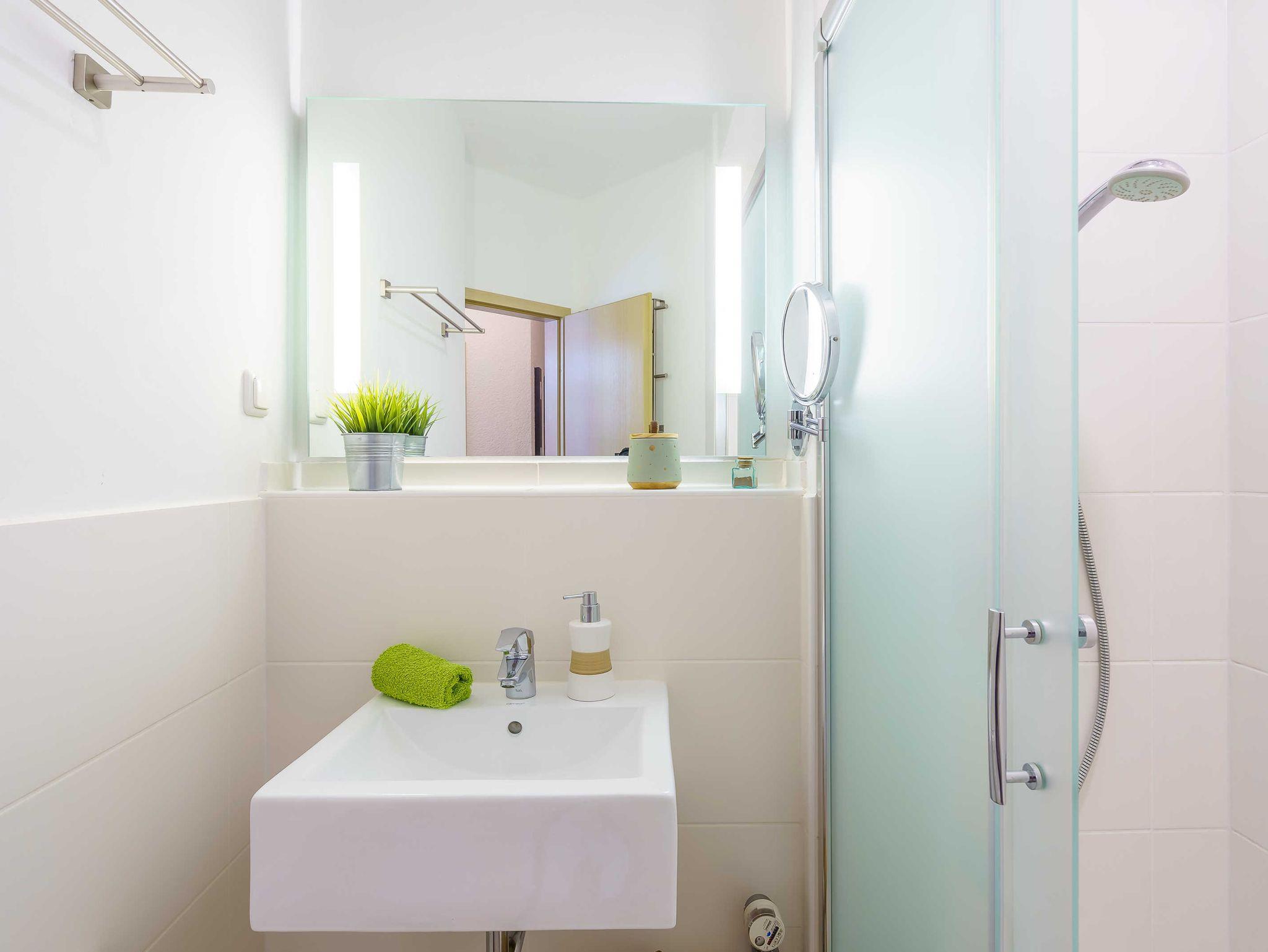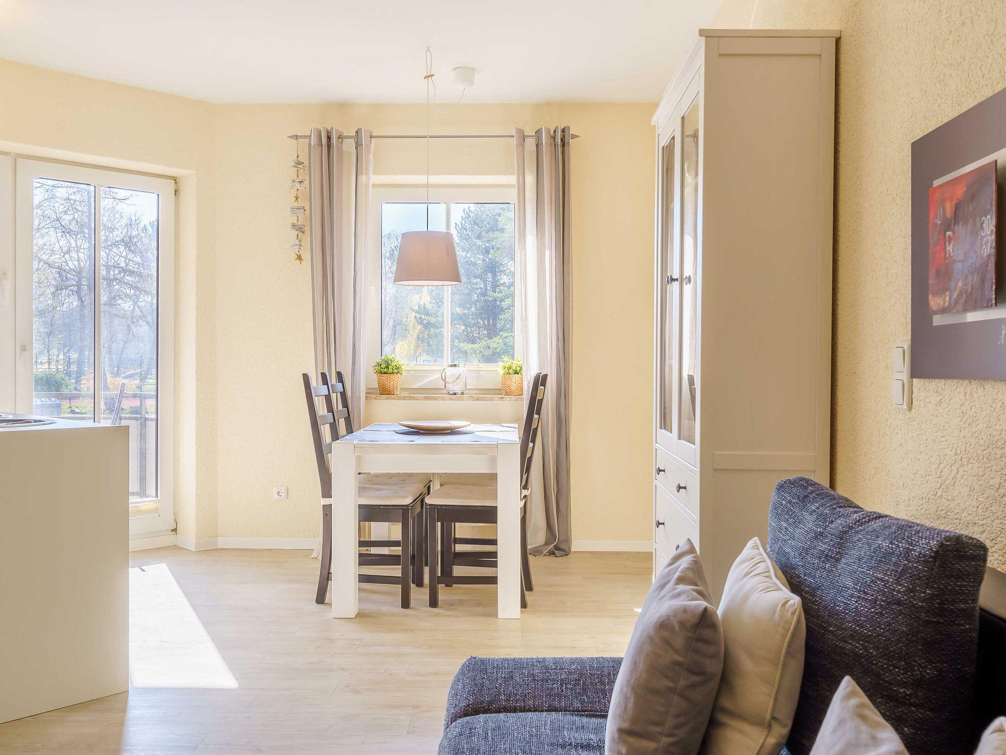 Die Ferienwohnung liegt im Erdgeschoss und hat 45m². Sie bietet einen erholsamen Urlaub für 2 Personen. Die Wohnung ist mit neuen Möbeln ausgestattet. Nichtraucher, Fußboden Designer Planken, Schwimmbad im Haus. Die Toilette und Dusche sind voneinander getrennt.