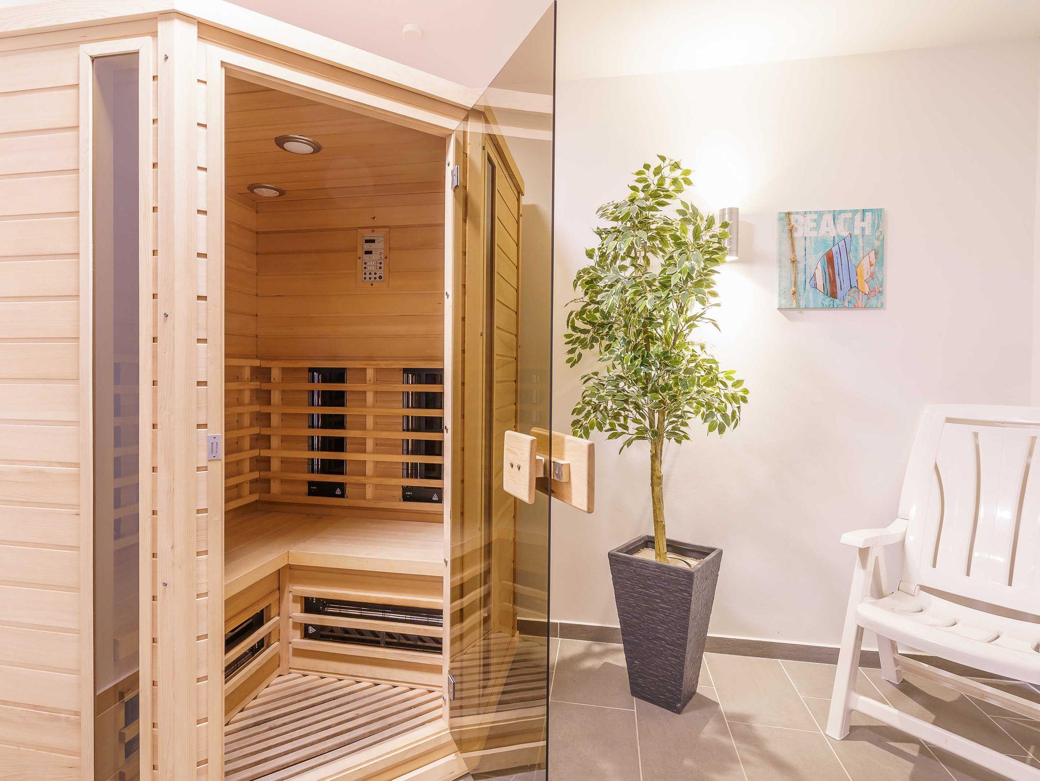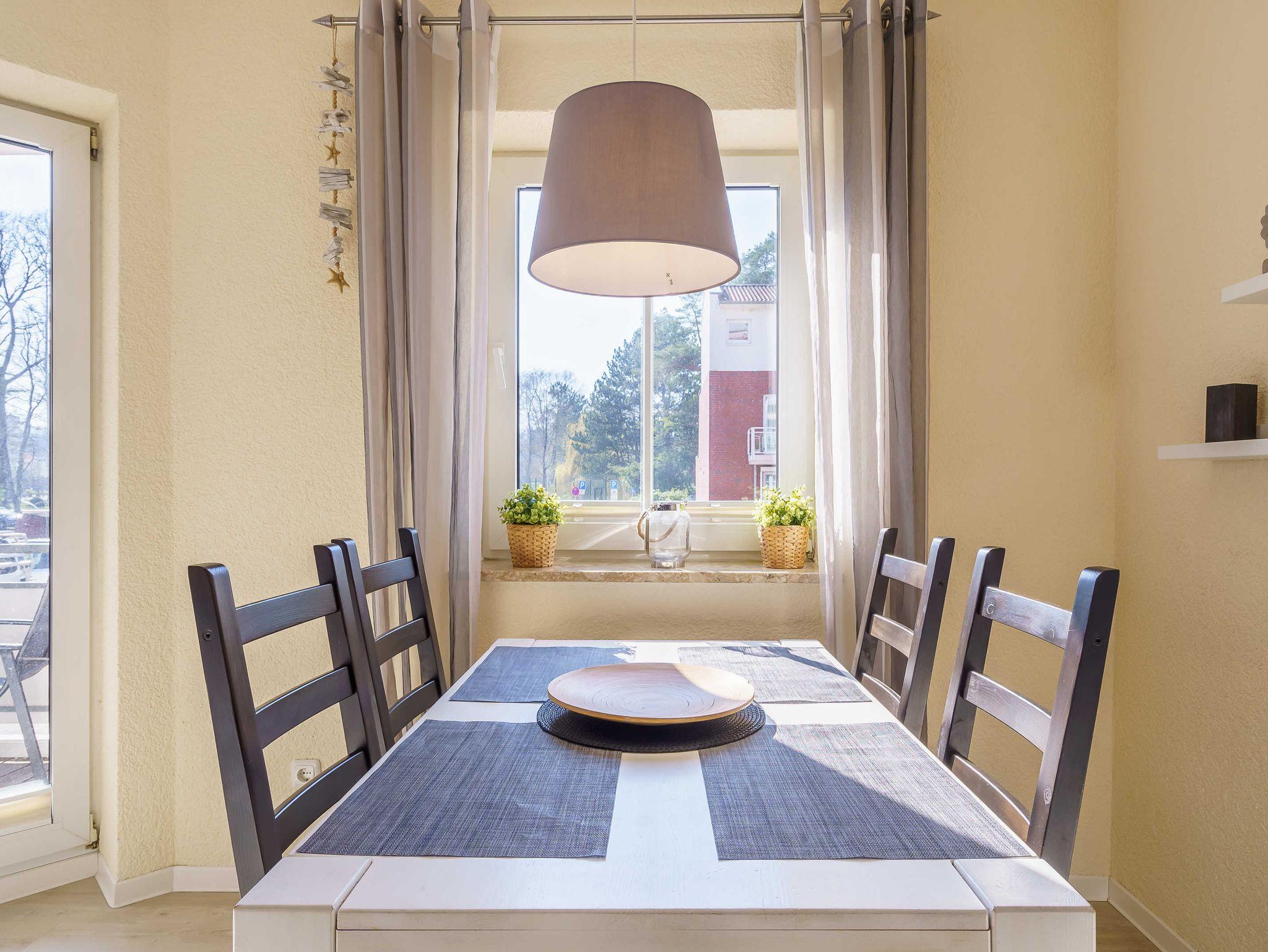 Moderne 2-Zimmer-Ferienwohnung mit Balkon, Pool und Spielzimmer in Scharbeutz, nur 100 m vom Strand entfernt.