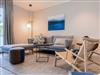 Modernes 2-Zimmer-Appartement Makani in Scharbeutz mit Meerblick und Strandkorb, ideal für erholsamen Ostseeurlaub.