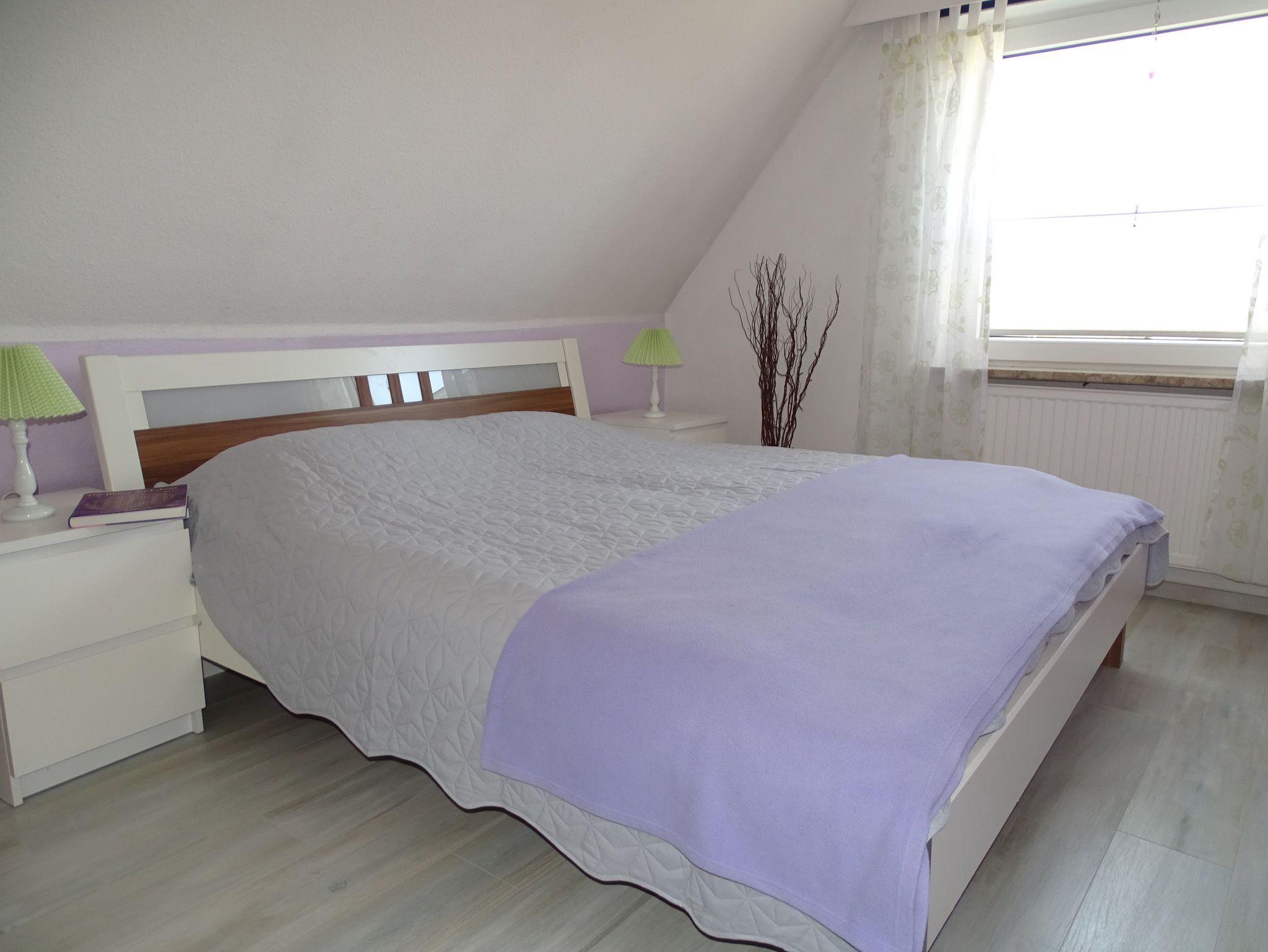 Ein Schlafzimmer ist mit einem Doppelbett (180x200m) eingerichtet. Im Kinderzimmer steht ein Bett (140 x200), ein Bett (90x200m) und ein Kinderbett mit Kinderstuhl, falls benötigt.