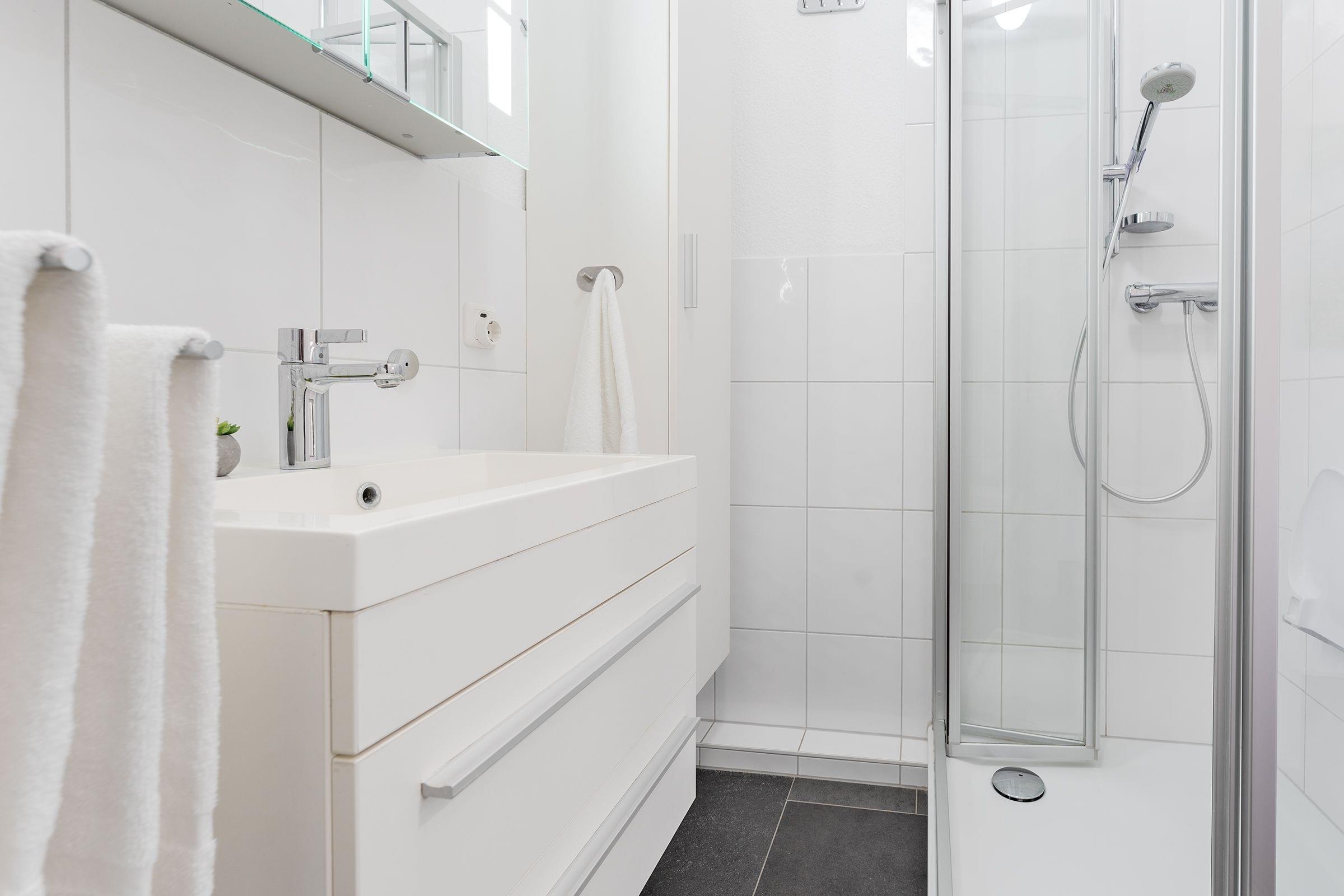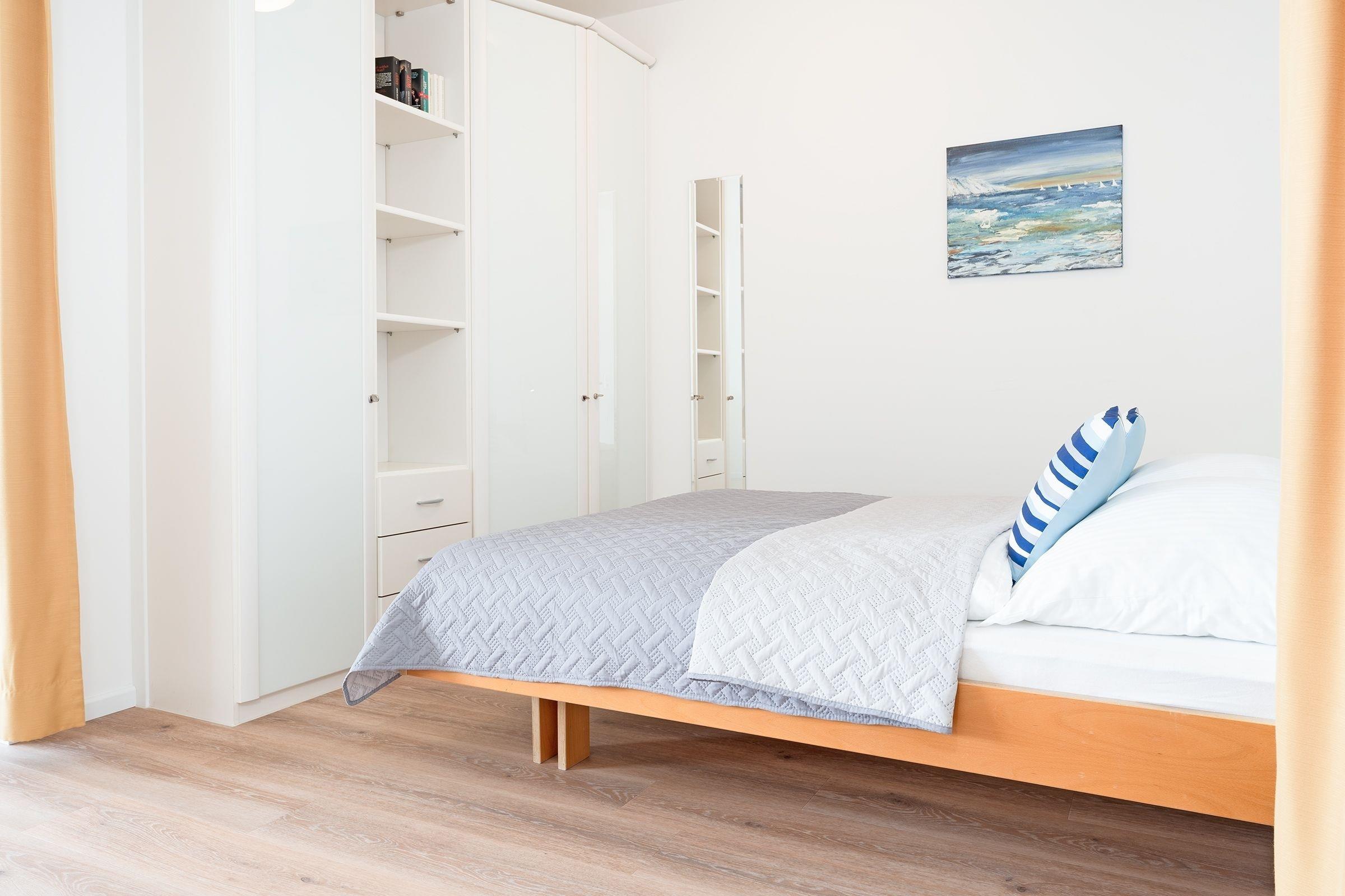 Nachdem Sie Ihren PKW auf dem am Haus befindlichen Parkplatz abgestellt haben, gelangen Sie mit dem Fahrstuhl oder über das Treppenhaus in Ihre Ferienwohnung. Über einen kleinen Flur betreten Sie die Wohnung und gelangen von dort in das modern gestaltete Duschbad mit Spiegelschrank, Föhn, Handtuchheizung und WC. Ebenfalls vom Flur erreichen Sie den hellen Wohnschlafraum mit einer Sitzecke, einer gemütlichen Couch, auf der Sie Ihre Urlaubstage mit einem Buch oder bei einem Fernsehabend vor dem Flat-TV ausklingen lassen können. Der angrenzende Schlafbereich ist mit einem Doppelbett (2x 90x200 cm) und viel Stauraum ausgestattet und lässt sich durch einen Vorhang charmant vom Wohnbereich abtrennen. Die kleine Küche mit Ihrer guten Ausstattung lädt Sie ein, kleinere Gerichte zuzubereiten. Entspannen Sie auf dem Balkon und genießen Sie den traumhaften Blick über die wunderschöne Ostsee. Nehmen Sie sich eine Auszeit, lassen Sie sich den Wind durch die Haare wehen und sammeln Sie unvergessliche Urlaubsmomente.