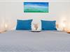 Schlafzimmer: 1 Doppelbett (2x 80x200 cm), innenliegend mit Oberlicht zum Wohnzimmer, keine Verdunkelung, kein Platz für Kinderreisebett