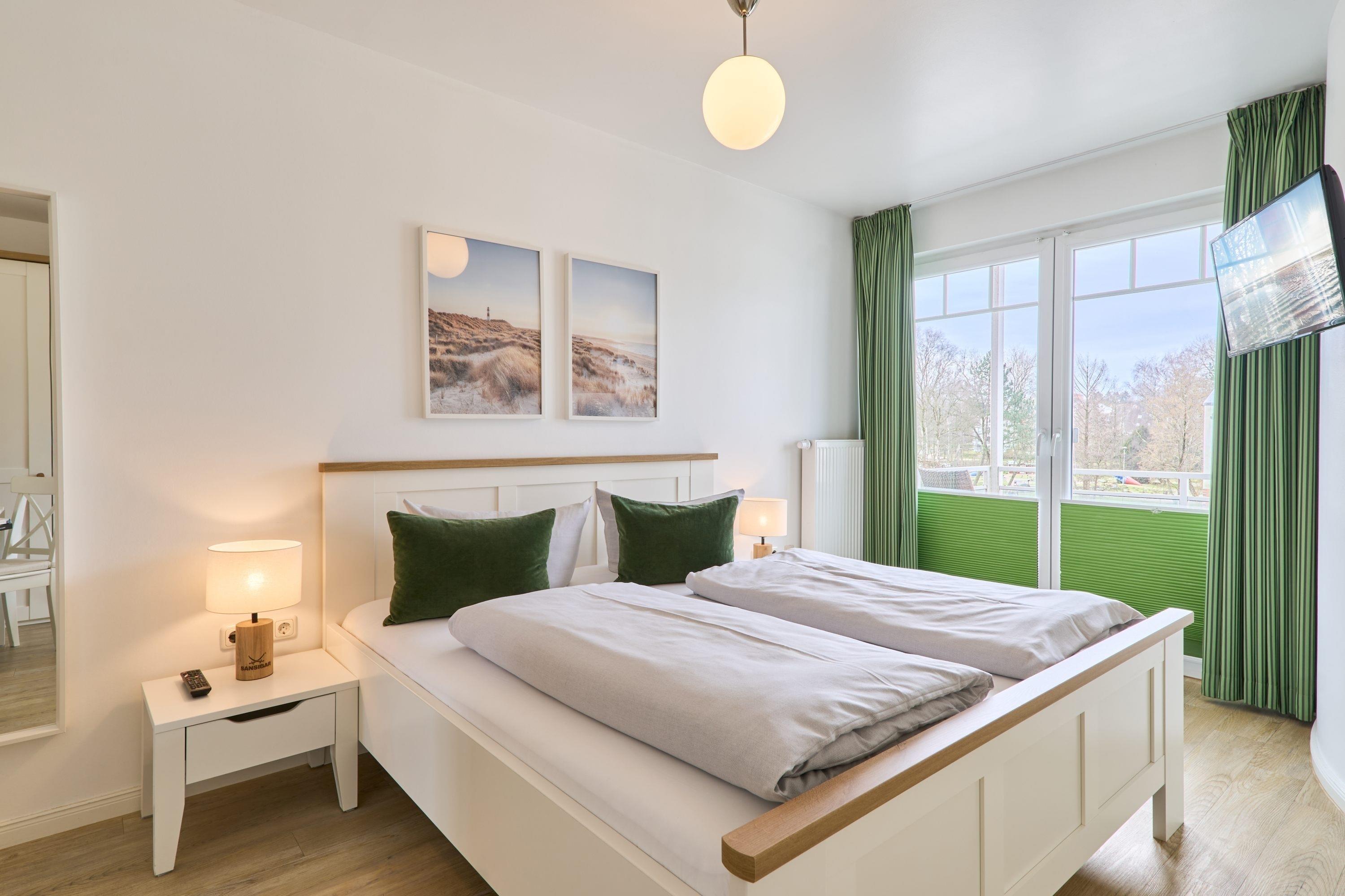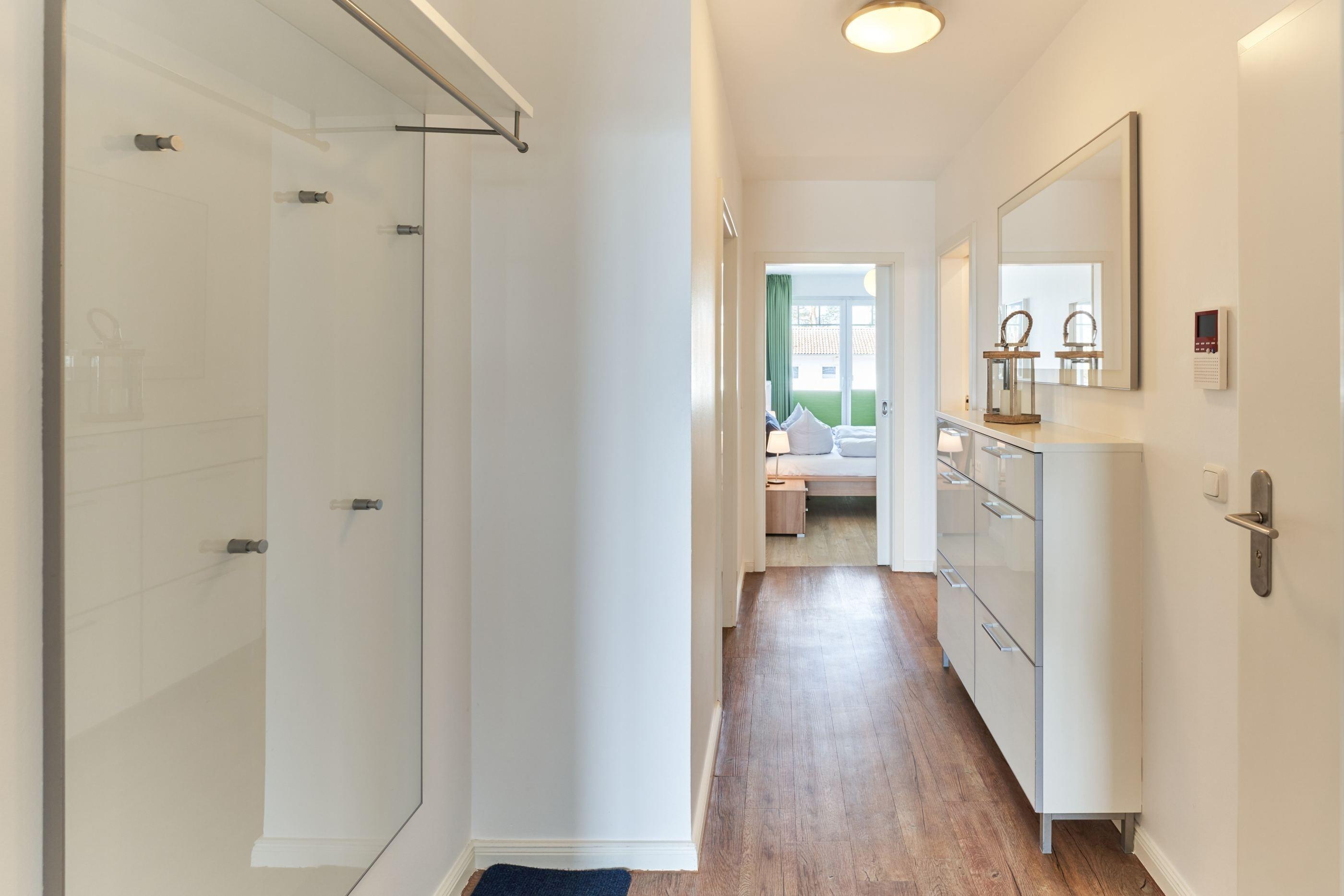 3-Zimmer-Ferienwohnung, ca. 98 m², zwei Schlafzimmer, zwei Duschbäder, Tiefgaragenstellplatz mit gebührenpflichtiger E-Ladestation (Durchfahrtshöhe 1,90 m), Fahrstuhl, für bis zu 4 Personen