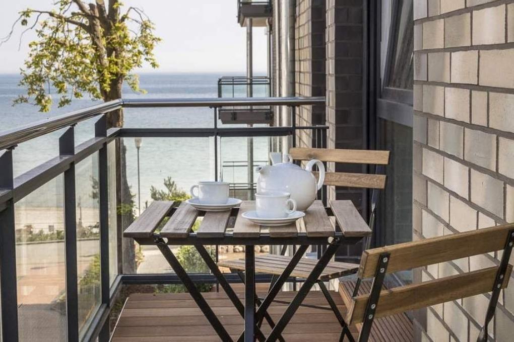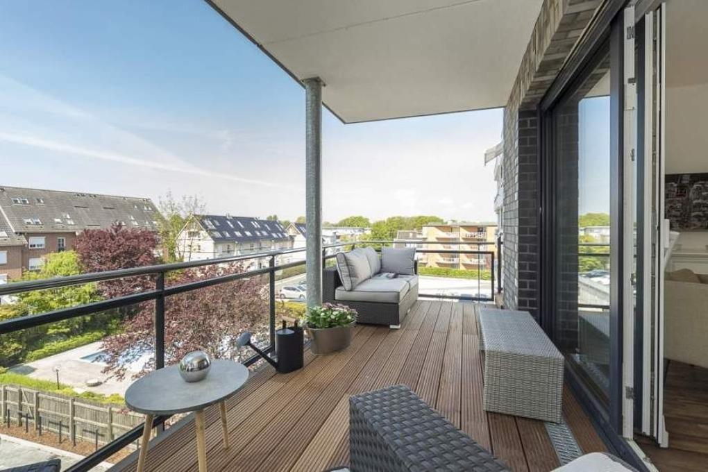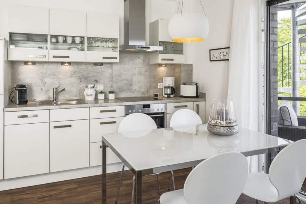 Im großzügigen Wohn-Essbereich erwartet Sie eine stilvolle, dezente Küchenzeile mit Markeneinbaugeräten sowie einer Nespresso-Maschine für den Cappuccino nach dem Strandtag. Ein eleganter Esstisch kombiniert mit klassischem Design lädt zum gemütlichen Verweilen ein. Vom Sofa genießen Sie einen unverbauten Ausblick über eine großzügige, bodentiefe Glasfront bei stimmungsvollem Sonnenlicht infolge der Süd-West-Ausrichtung. Gerne können Sie von hier aus auch den großen umlaufenden Balkon mit angenehmem Holzdeck betreten und bei einem Glas Wein sowohl die wärmende Nachmittagssonne als auch den Sonnenuntergang in der Chill-Lounge mit Meerblick genießen.
