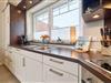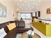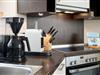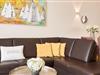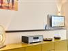 Der ansprechende Wohnbereich mit einem großen Panoramafenster ist mit einer gemütlichen Sofaecke ausgestattet. Neben einem TV-Flachbildfernseher und einer Sono-Anlage steht Ihnen selbstverständlich kostenloses WLAN zur Verfügung. Vom Wohnbereich aus gelangen Sie auf die Dachterrasse Richtung Ostsee. Diese ist mit einem Tisch, Stühlen und einer elektrischen Markise ausgestattet. Die helle Küche lässt keine Wünsche offen. Ein nettes Extra bieten die bereitgestellten Kochbücher mit vielen leckeren Rezepten zum Nachkochen. Der Esstisch bietet Ihnen ausreichend Platz für gesellige Stunden.