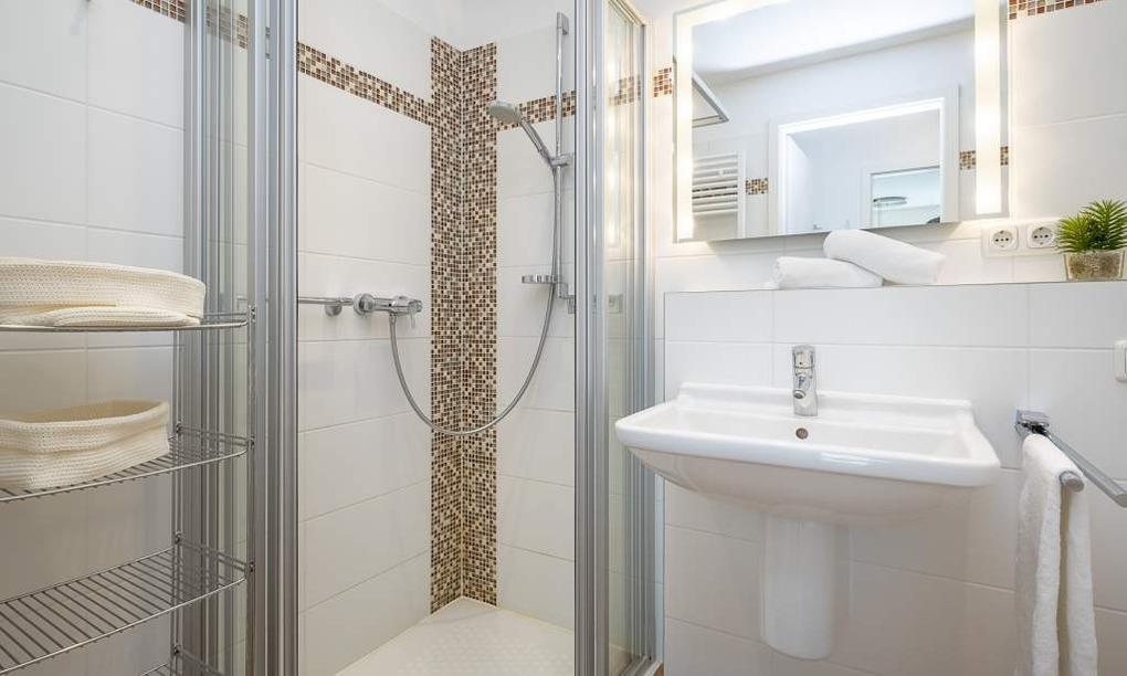 Ein modernes Duschbad mit Handtuchheizkörper sowie ein separates Gäste-WC, in dem sich eine Waschmaschine befindet, runden die Ausstattung ab. Zur Ausstattung gehören außerdem kostenfreies WLAN, eine iPod-Dockingstation, eine Musikanlage mit Radio und CD-Player, ein Safe sowie ein Blu-ray-Player.