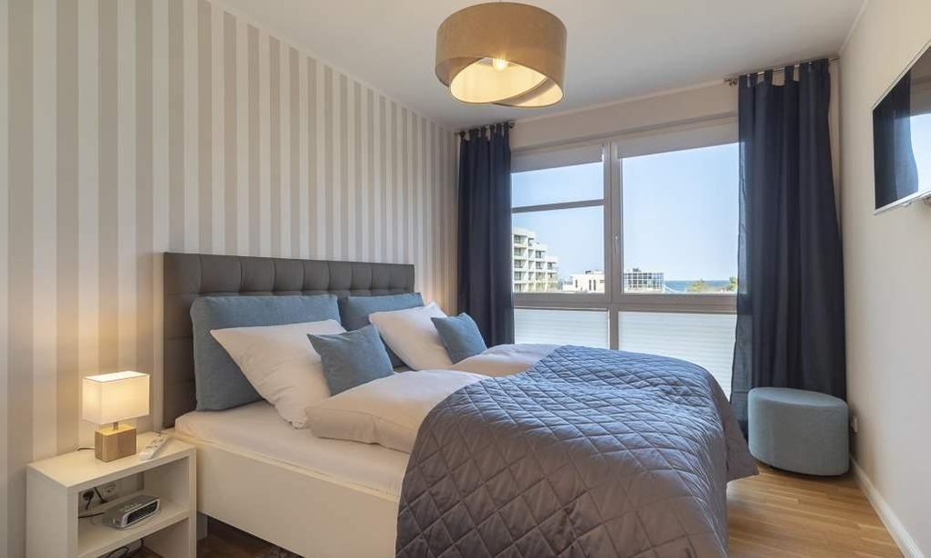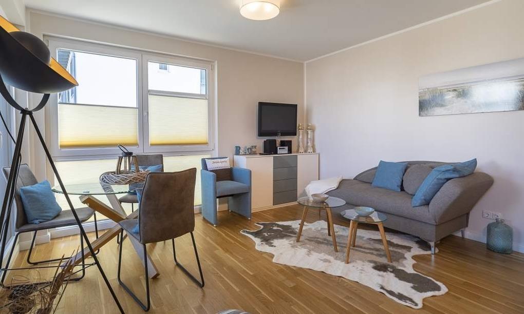 Im Schlafzimmer sorgt ein bequemes Doppelbett (1,80 x 2,00m) mit Qualitätsmatratzen für einen erholsamen Schlaf. Die Urlaubsgarderobe findet Platz im geräumigen Kleiderschrank. Für den zusätzlichen Komfort steht Ihnen auch hier ein stylischer Flachbildfernseher zur Verfügung. Alle Räume sind mit warmem Echtholzparkett und Fußbodenheizung ausgestattet. Bodentiefe Fenster garantieren viel Tageslicht und eine gute Aussicht. Das Badezimmer verfügt über eine bodentiefe Dusche und einen großen Spiegel. Neben der Fußbodenheizung ist hier ein zusätzlicher Handtuchheizkörper angebracht. Weiteres Highlight – eine zusätzliche Gäste-Toilette.