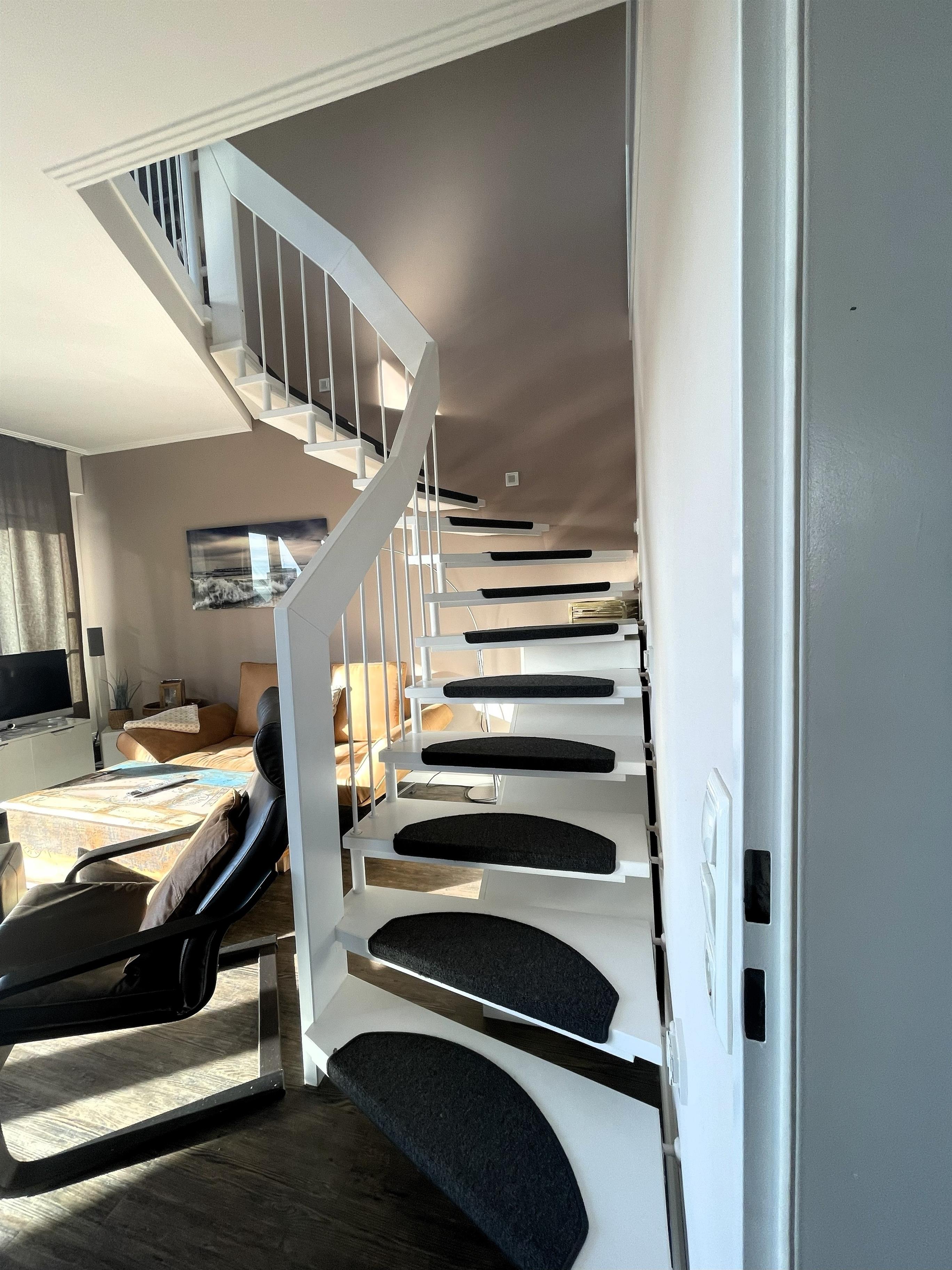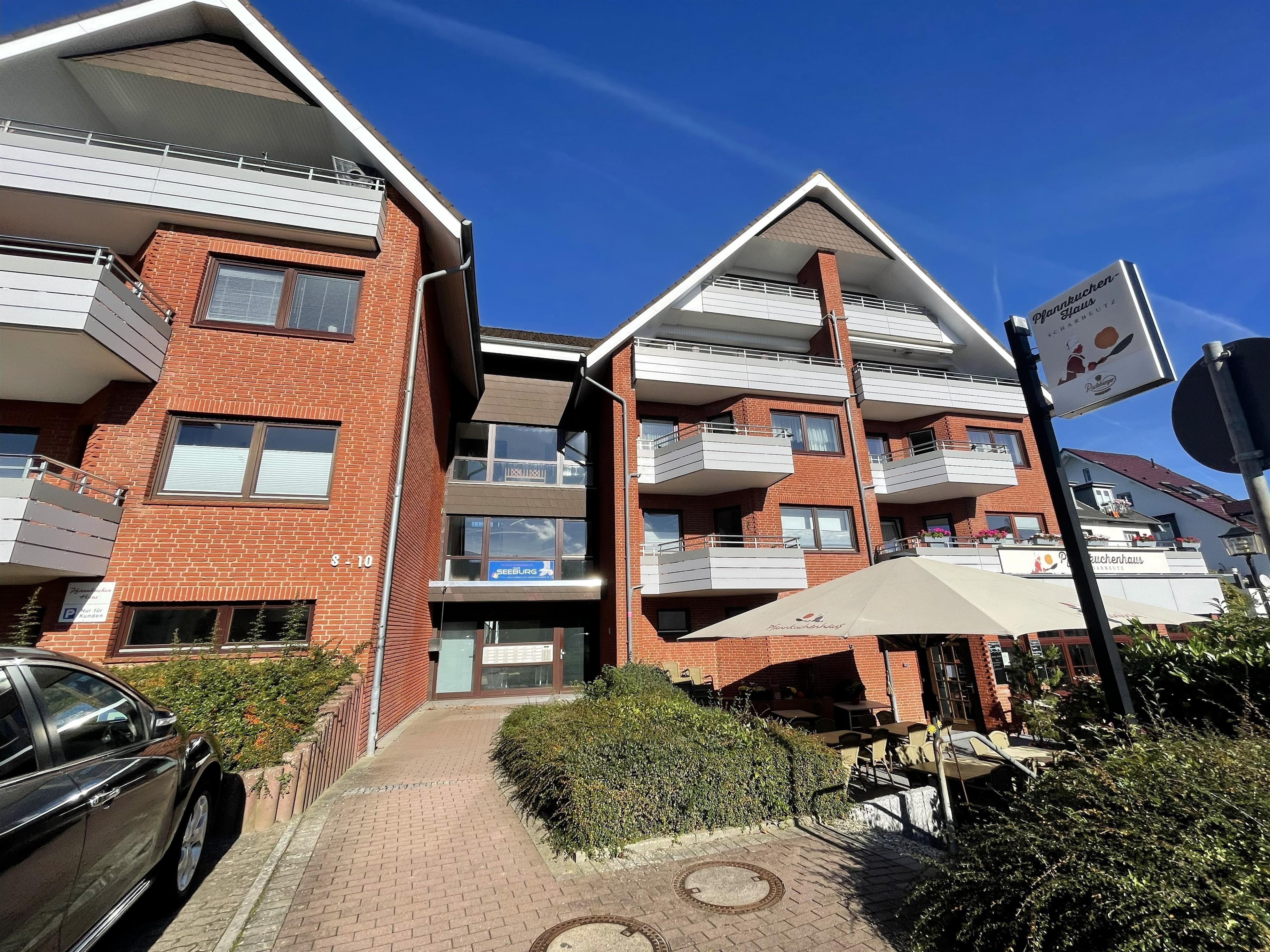 Wohnen mit Stil – dem Meer so nahIn der dritten Etage betreten Sie einen hellen Flur, der direkt in den modernen Wohn-Essbereich mit angeschlossener Pantryküche führt. Warme Farben, natürliche Materialien und liebevolle Details schaffen ein Ambiente, in dem man sofort zur Ruhe kommt. Das komfortable Sofa und der gemütliche Schwingsessel laden zum Entspannen ein – beim Fernsehen mit TV und DVD Player, beim Lesen oder beim Blick in den Scharbeutzer Kurpark.Vom Wohnbereich aus gelangen Sie auf den Süd-Balkon mit leichtem Meerblick – der perfekte Ort für genussvolle Stunden im Freien. Hier befindet sich eine elegante Essecke für vier Personen – ideal für ein gemütliches Frühstück in der Morgensonne oder ein entspanntes Abendessen mit Blick über Scharbeutz. Genießen Sie die frische Ostseeluft und das besondere Licht der Lübecker Bucht.Moderne Loungesessel laden anschließend dazu ein, den Tag bei einem Glas Wein und dem sanften Klang der Wellen stilvoll ausklingen zu lassen.Auf dem zweiten Balkon auf der oberen Etage erwarten Sie weitere komfortable Loungesessel – perfekt, um Sonne zu tanken, zu lesen oder einfach den Moment zu genießen.Komfort und AusstattungDer elegante Essbereich mit gemütlichen Freischwinger-Stühlen bietet genügend Raum für gemeinsame Mahlzeiten. In der modernen Pantryküche finden Sie alles was das Herz begehrt: Cerankochfeld, Backofen, Geschirrspüler, Kaffeemaschine, Wasserkocher, Toaster und einen exklusiven Weinkühlschrank – ideal für Genießer.Über die stilvolle Wendeltreppe gelangen Sie in den offen gestalteten Schlaf- und Relaxbereich. Hier erwartet Sie ein gemütliches Daybed zum Entspannen, lesen oder für Filmabende auf dem großen Flachbildfernseher mit Soundsystem. Wer aktiv bleiben möchte, nutzt das bereitliegende Hantelset. Das komfortable Doppelbett (1,60 x 2,00 m) – Einstieg nur über das Fußende möglich – sorgt für erholsamen Schlaf, während sich das Daybed zu einem Doppelbed für zwei Kinder verwandeln lässt – ideal für den Familienurlaub an der Ostsee.Wohlfühlbad und ExtrasDas Badezimmer in der unteren Etage ist hell und modern gestaltet, mit Dusche, Waschbecken, Spiegelschrank und großen Dachfenster. Ein Föhn steht selbstverständlich auch zur Verfügung.Zur weiteren Ausstattung gehören kostenfreies WLAN, Kinderreisebett, Hochstuhl, eine elektrische Markise auf dem unteren Balkon sowie ein reservierter Parkplatz direkt am Haus. Die Wohnung ist Nichtraucher-freundlich, Haustiere sind nicht gestattet. Im Haus stehen Waschmaschine und Trockner (gegen Gebühr) zur Verfügung. Im Erdgeschoss lädt ein Gemeinschaftsraum mit Tischtennisplatte und Tischkicker zu geselligen Stunden ein – perfekt für Familien und Freunde.