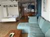 In dem großen Wohn-Schlafraum mit breiter Fensterfront zum Meer, befindet sich ein Polstersofa nebst Sessel und Hocker, Couchtisch, Sony Flachbild TV. Des Weiteren ein Sekretär, Kleiderschrank sowie das integrierte Schrankbett mit zwei Matratzen (ca. 80x200cm).
