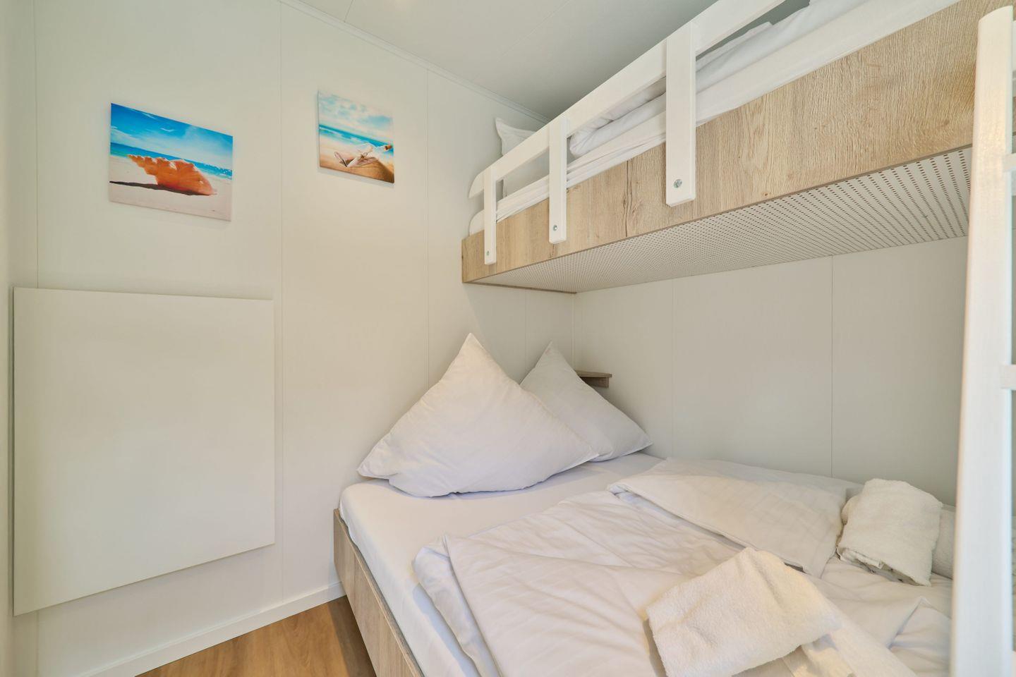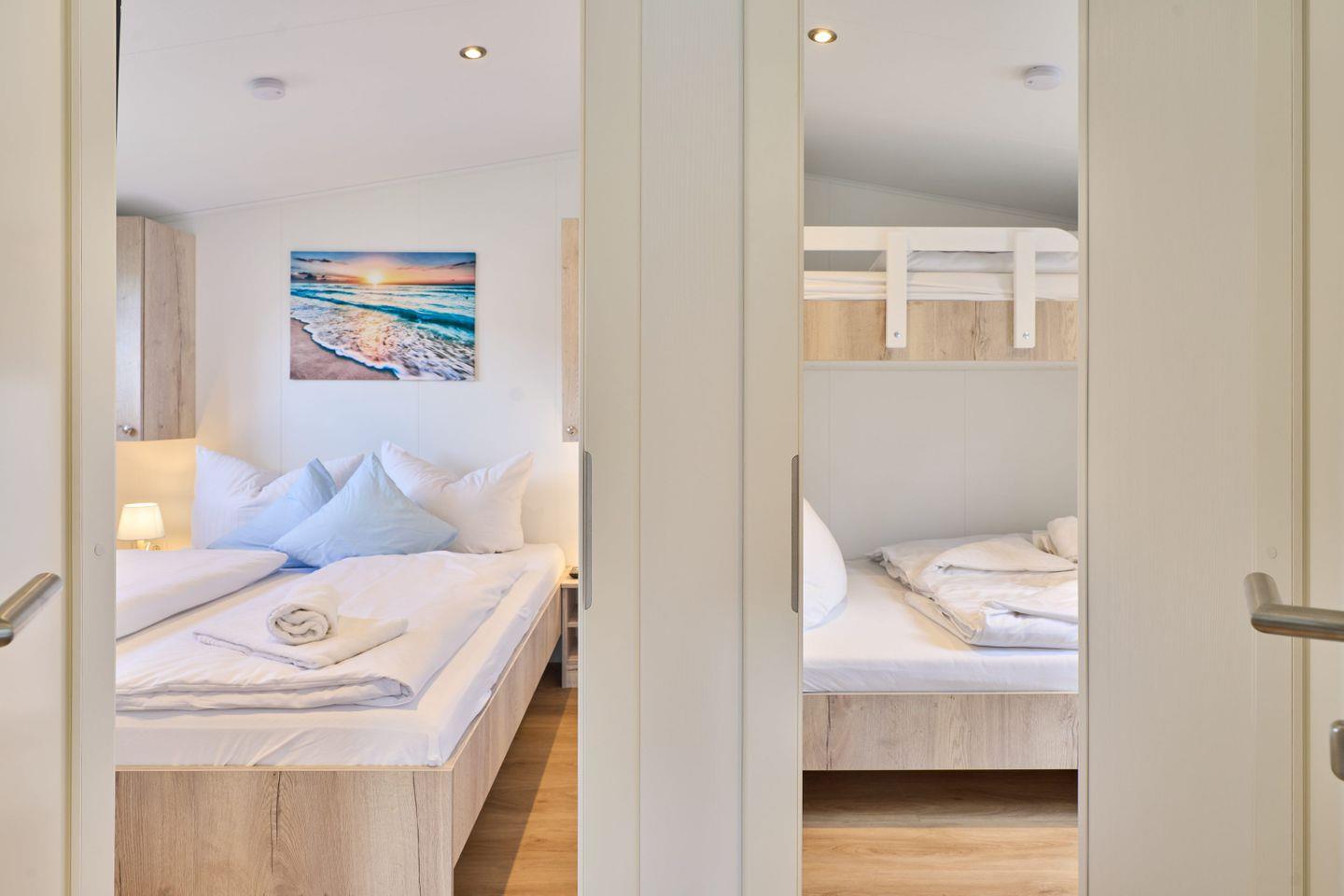 Die lichtdurchflutete Unterkunft auf Hochparterre bietet auf 40 m² eine durchdachte Raumaufteilung mit insgesamt drei Zimmern. Zwei separate Schlafzimmer mit Vinylboden sorgen für eine ruhige Rückzugsmöglichkeit; auch Babys sind herzlich willkommen. Das Ferienhaus verfügt über ein modernes Badezimmer mit bodengleicher Dusche, Waschbecken, Haartrockner und WC. Ein Fenster sorgt für Tageslicht und ausreichend Belüftung.