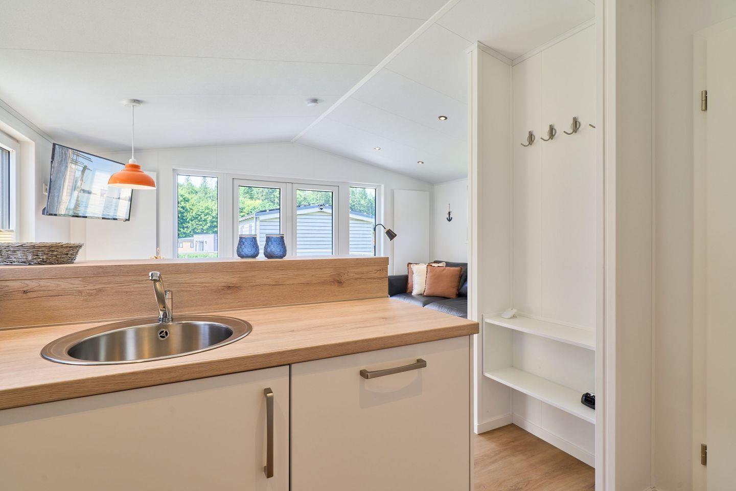 Der offene Wohn- und Essbereich besticht durch eine gemütliche Sofaecke sowie einen Essplatz mit Esstisch, während der Vinylboden eine angenehme Atmosphäre schafft. Für Unterhaltung sorgen ein Satelliten-TV und kostenfreies WLAN. Die offene Küche ist vollständig ausgestattet und bietet neben Ceranherd, Backofen, Kühlschrank mit Gefrierfach, Spülmaschine, Mikrowelle, Kaffeemaschine, Wasserkocher, Toaster und Küchenmaschine auch ausreichend Küchenutensilien und Geschirr. Geschirrhandtücher, Handtücher sowie Bettwäsche sind vorhanden. Ein Wäscheständer, Staubsauger und Fliegengitter runden die Ausstattung ab. Die elektrische Heizung sorgt auch an kühlen Tagen für Behaglichkeit.