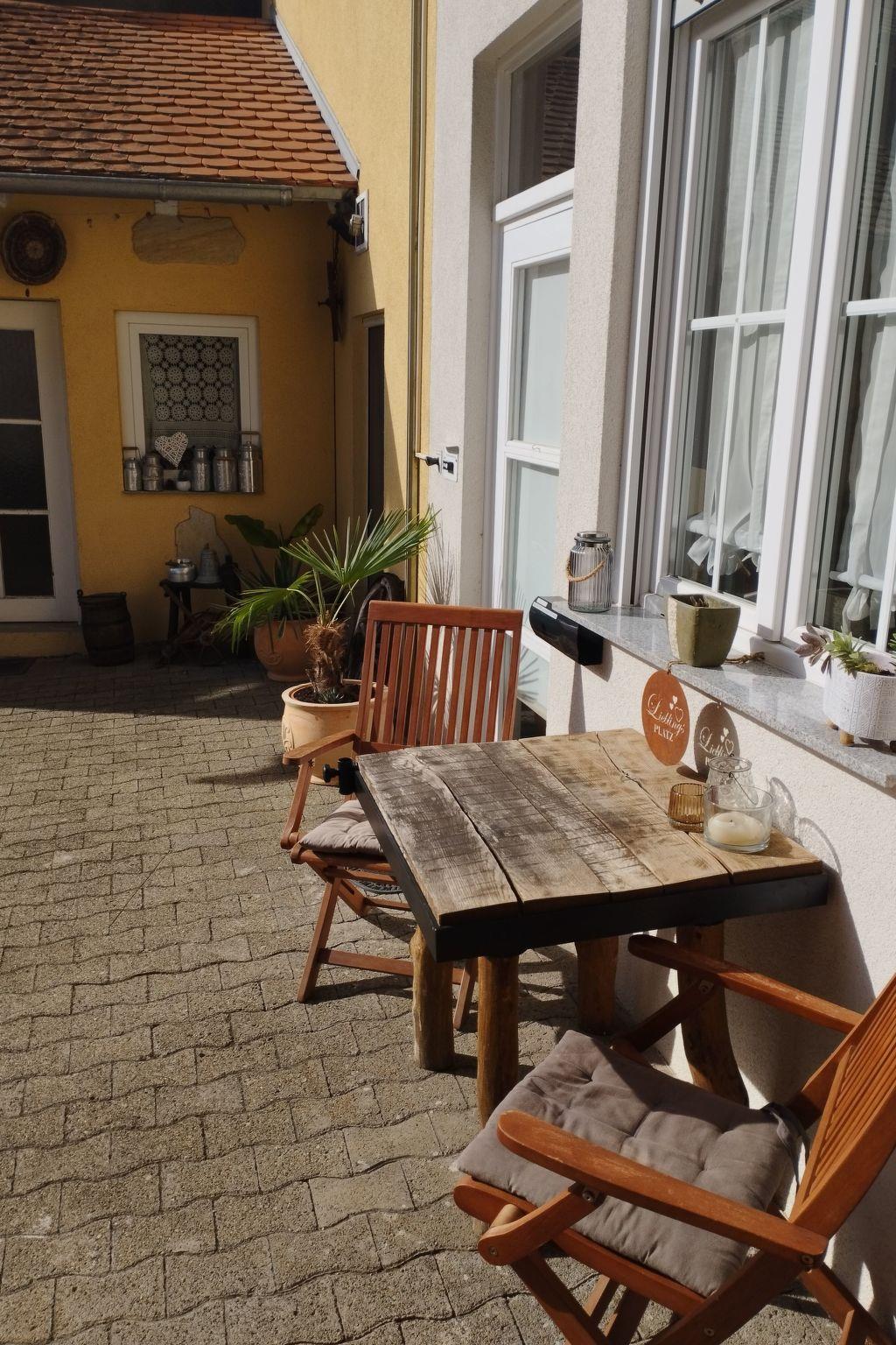 Die Lage des Hauses ist am Hang ca. 150 Meter von den Weinbergen entfernt. Dort befindet sich auch ein großer Parkplatz, wo Sie gratis ihr Fahrzeug parken können. Wenn Sie gehbehindert sind werden werden die Vermieter Ihnen einen Parkplatz direkt vor der Wohnung einrichten. Der Eingang zur Wohnung liegt im Hof des Anwesens. Sie haben direkt vor der Wohnungstür eine Sitzmöglichkeit entweder in einem Sessel oder an einem Bistrotisch.