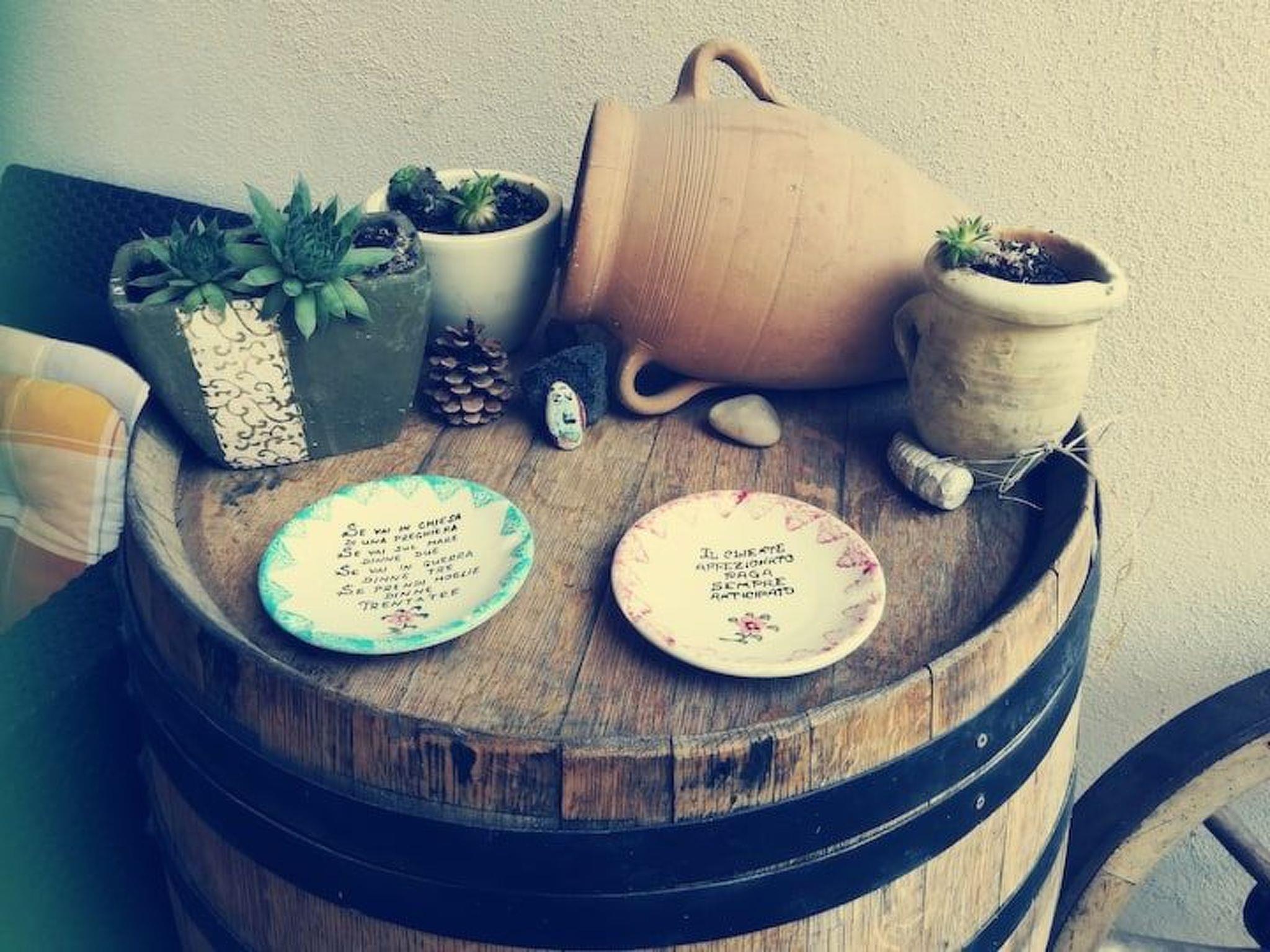 Die Ferienwohnung ist separat mit eigener Eingangstür und auch parterre (ebenerdig) ohne lästige Treppen. Es gibt nur eine Stufe zum Schlafzimmer. Die Wohnung ist ohne Klimaanlage sehr kühl im Sommer und bietet daher ein wundervolles Raumklima. Es erwartet Sie ein traumhaftes Schlafzimmer mit Natursteinwänden und schönen Möbeln aus antikem Massivholz. Darin ist ein schönes Doppelbett (180 x 200cm), welches auch auseinander gestellt werden kann. Durch eine schöne indirekte Beleuchtung und das tolle Raumklima finden Sie sicher einen erholsamen Schlaf. Das Wohnzimmer ist eine Wohnküche. Sie haben hier zu zweit komfortabel Platz. Wie im Süden sind die Decken drei Meter hoch und vermitteln so den Eindruck als wären Sie in Italien. An einer schönen Naturstein-Theke können Sie mit bis zu vier Personen frühstücken bzw. essen. Auf der anderen Seite des Raumes haben Sie eine große ausziehbare Wohnlandschaft (Couch), welche sich zum Doppelbett (175 x 190cm) erweitern lässt. Auf dieser Couch können dann die Kinder schlafen. In der Küche fehlt es an nichts. Sie ist völlig eingerichtet mit allem was Sie brauchen (Backofen, Herd, Spülmaschine, Kaffeemaschine, Wasserkocher etc.) Das Bad ist klein aber fein. Es gibt hier eine Eckdusche, ein Waschbecken und ein WC. Handwaschseife, Handtücher, Toilettenpapier und auch ein Haarföhn steht für Sie bereit. Für Ihr Gepäck und für Ihre Vorräte haben Sie auch einen kleinen Abstellraum. Darin befindet sich ein Staubsauger, Leergutbox, etc. Die Wohnung ohne Abstellraum ist knapp über 40 m² groß.