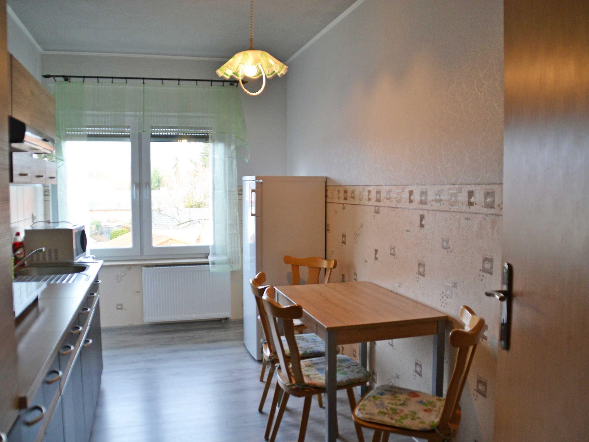Unsere gemütliche und dennoch geräumige Ferienwohnung mit zwei separaten Schlafzimmern befindet sich im 1. Obergeschoss des Zweifamilienhauses. Mitten im Dorf gelegen mit Blick auf die Wiesen, können Sie die Natur und Ruhe genießen. Wie laden Sie ein, unseren Garten und Grillecke für einen gelungenen und gemütlichen Ausklang am Abend zu nutzen. Bei uns finden auch Ihre Räder, Motorräder oder Autos einen Platz.