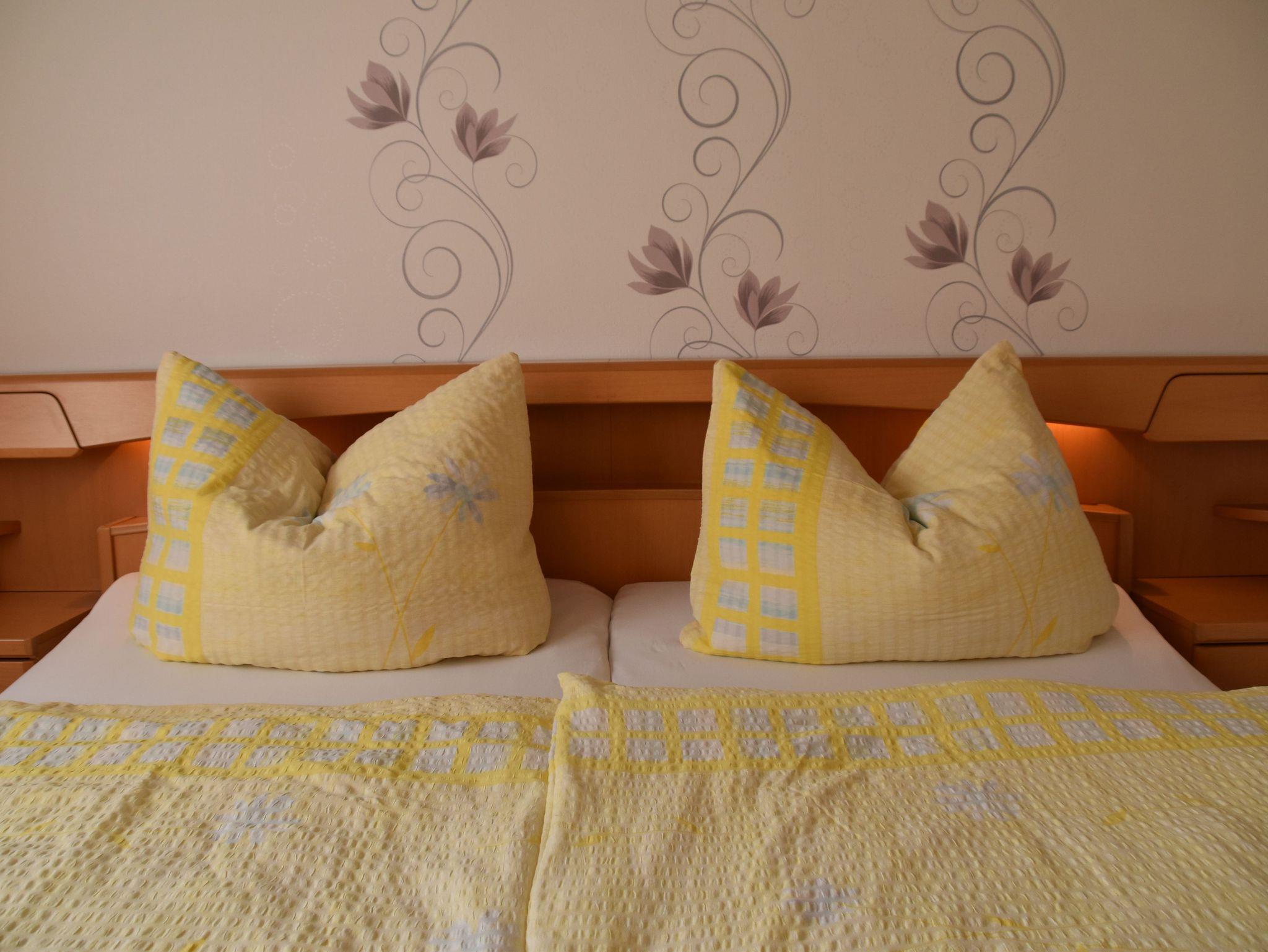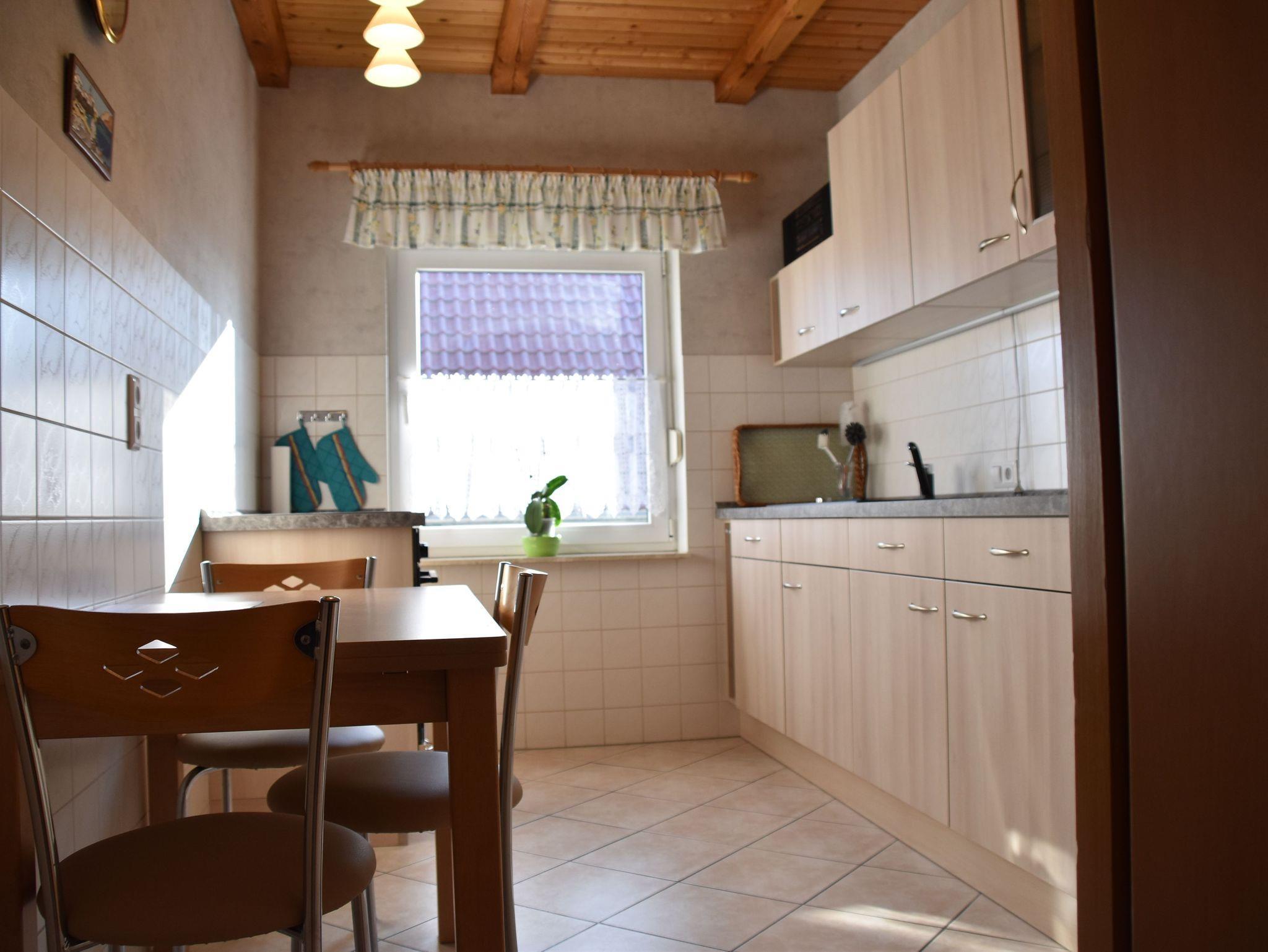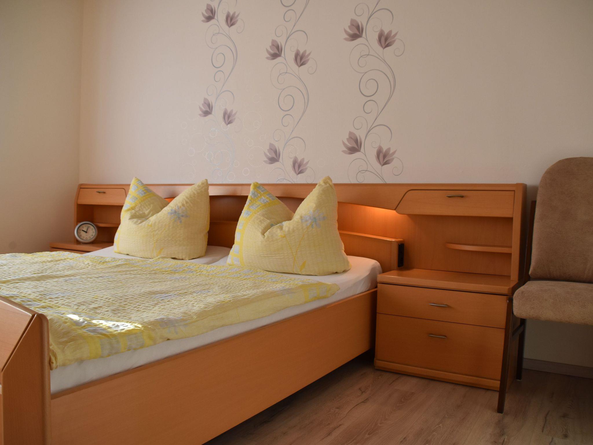 Es erwartet Sie eine liebevoll eingerichtete Ferienwohnung mit einer voll ausgestatteten Küche. Geschirrspüler, Herd mit Backofen, Mikrowelle, Kaffeemaschine, Kühlschrank, sowie Wasserkocher sind vorhanden. Das geräumige Badezimmer verfügt über eine Dusche, Badewanne, WC, einen großen Waschtisch und eine Wasch-maschine. Alle Räume sind mit Fußbodenheizung ausgestattet. Der Schlafraum mit dem Doppelzimmer bietet durch einen Einbauschrank extra viel Stauraum. Im Schlafraum mit den beiden Einzelbetten befinden sich zusätzlich ein kleiner Schreibtisch, sowie ein TV. Das neu eingerichtete Wohnzimmer bietet direkten Zugang zum überdachten Balkon und lädt mit seinem großen Sofa und dem Fernsehsessel zum Ausspannen ein. Für Familien mit Kleinkindern können Babybett, Hochstuhl und Töpfchen bei Bedarf bereitgestellt werden.