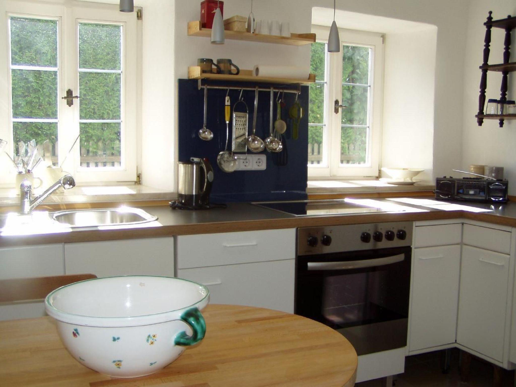 Innerhalb des Hauses erwarten Sie eine große, gemütliche Wohnstube, die mit einem alten, aber zurzeit nicht betriebsbereiten Gussplattenofen ausgestattet ist. Eine modern ausgestattete Küche mit Spülmaschine, Backofen, Elektroherd, Gefrierfach, Kaffeemaschine, Kühlschrank, Toaster und Wasserkocher steht Ihnen zur Verfügung. Zwei Schlafzimmer bieten ruhige Rückzugsorte, und für den Komfort unserer Gäste gibt es ein Bad mit WC im ersten Stock sowie ein separates WC im Erdgeschoss, welches sich in der alten Rauchkuchl befindet. Für zusätzliche Schlafgelegenheiten sorgt eine Schlafdiele, die durch einen Vorhang abtrennbar ist und über eine Doppelschlafcouch verfügt.