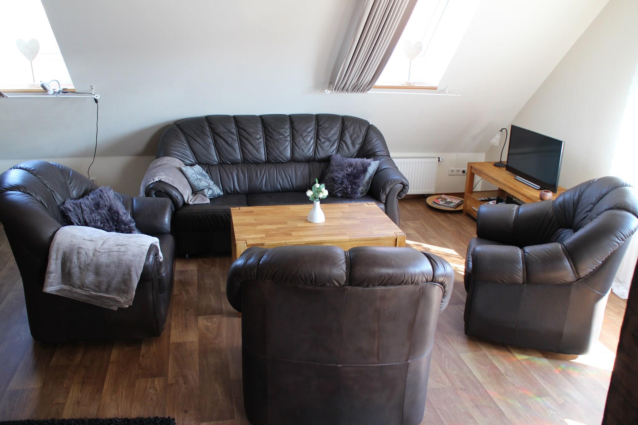Eingebettet in die ruhige Landschaft des Teutoburger Waldes bietet diese charmante Dachgeschosswohnung in einem liebevoll restaurierten Bauernhaus aus dem Jahr 1841 einen ruhigen Rückzugsort für bis zu vier Gäste. Mit kostenlosem WLAN, einer privaten Sauna und einer Gartenterrasse, die sich perfekt für Abendessen unter dem Sternenhimmel eignet, ist sie eine Oase der Entspannung und des Lebens im Freien. Im Innenbereich genießen Gäste eine gemütliche Raumaufteilung mit voll ausgestatteter Küche, warmen Möbeln und einer herrlichen Aussicht. Der private Garten lädt zu ruhigen Morgenstunden und spielerischen Nachmittagen ein. Fahrradabstellplatz, Grillmöglichkeiten sowie Parkplätze für Hunde und Pferdeanhänger sorgen für zusätzlichen Komfort. Pferdeställe sind auf Anfrage verfügbar und somit ideal für Reiter. Entdecken Sie nahegelegene Sehenswürdigkeiten wie die Rattenfängerstadt Hameln, die mystischen Externsteine und das hoch aufragende Hermannsdenkmal. Restaurants (300 m) und Geschäfte (200 m) sind bequem zu Fuß erreichbar. Frische Lebensmittel vom Bauernhof sorgen für eine rustikale Atmosphäre. Bitte beachten Sie: Partys sind nicht gestattet.