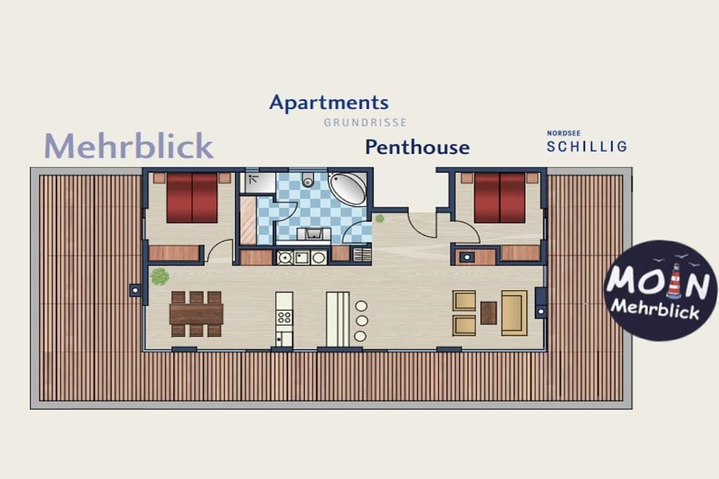 Exklusives Penthaus mit Meerblick, Sauna und umlaufender Dachterrasse in Schillig.